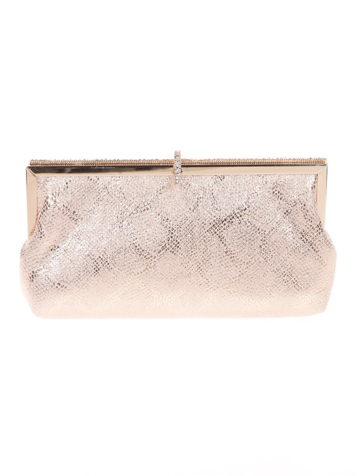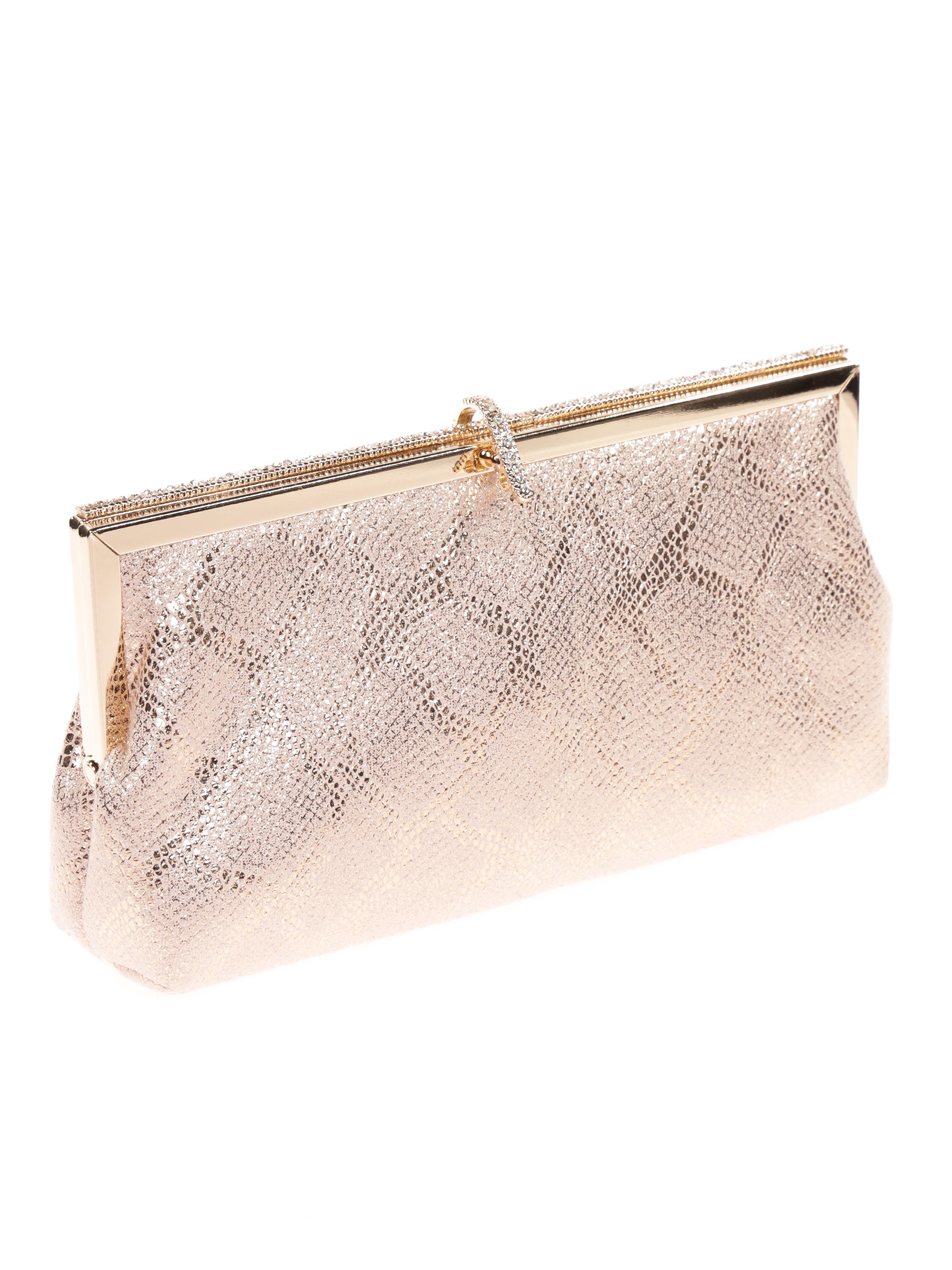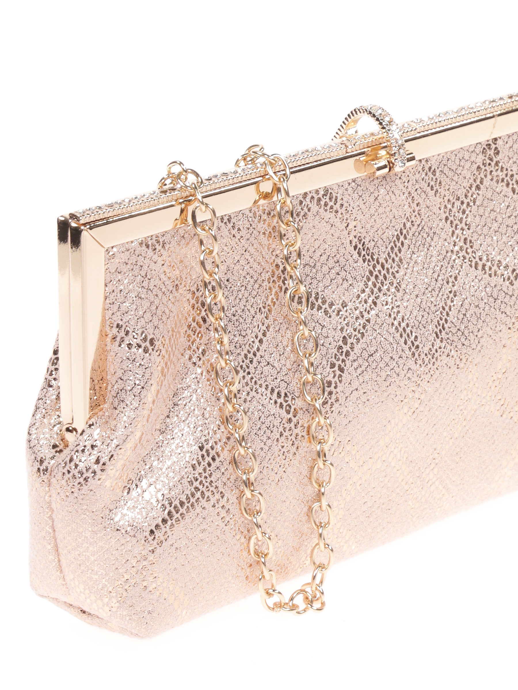 Bolso de fiesta. Material polipiel. Estampado de animal en ambos lados. Efecto metalizado. Asa de hombro en cadena. Forro con bolsillo interior. Cierre metálico dorado.