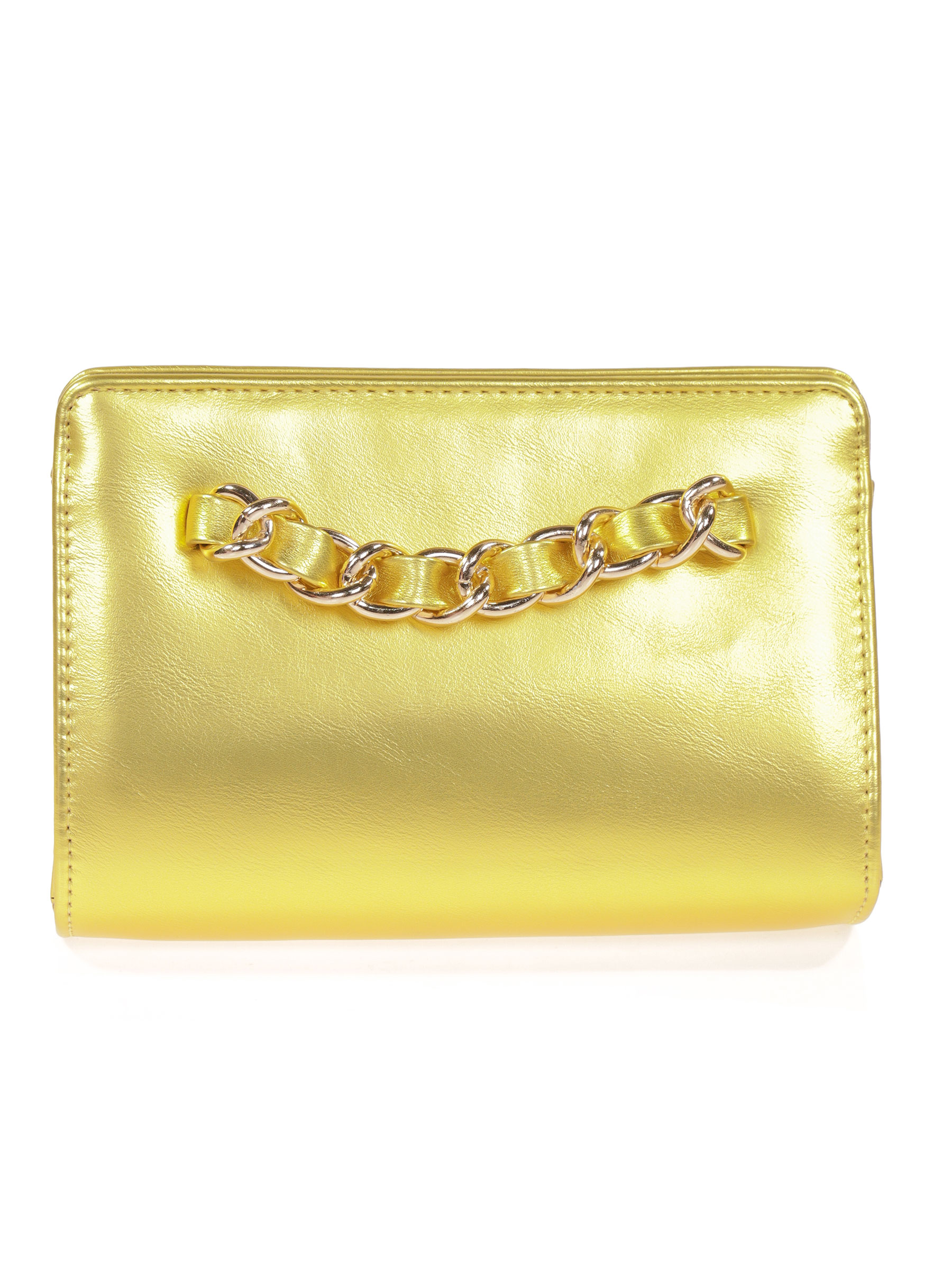 Bolso de fiesta. Material polipiel. Efecto metalizado. Asa de hombro en cadena. Bolsillo Interior con cierre mediante cremallera. Cierre mediante imán.