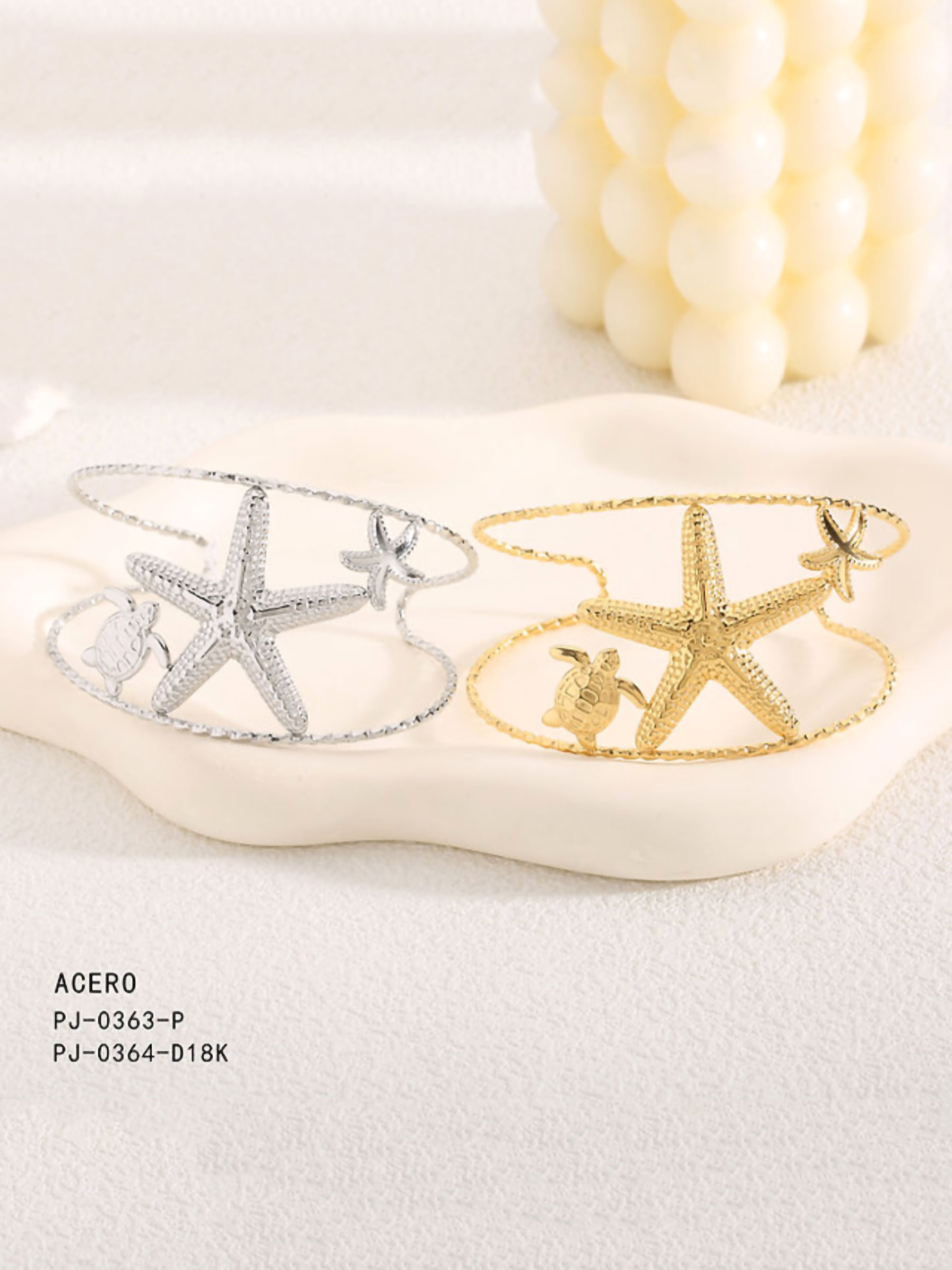 Detalles de brazalete abierta rígida estrella de mar - acero inoxidable BS-PJ0363-PJ0364
