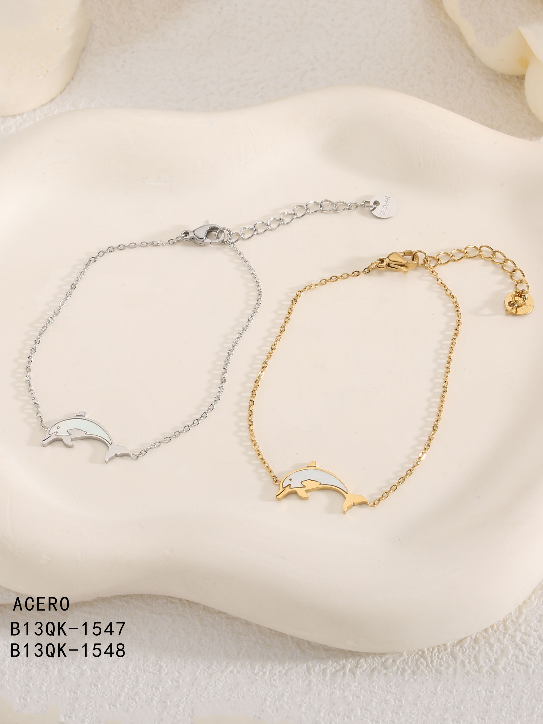 Detalles de pulsera delfín de nácar - acero inoxidable BS-QK1547-QK1548