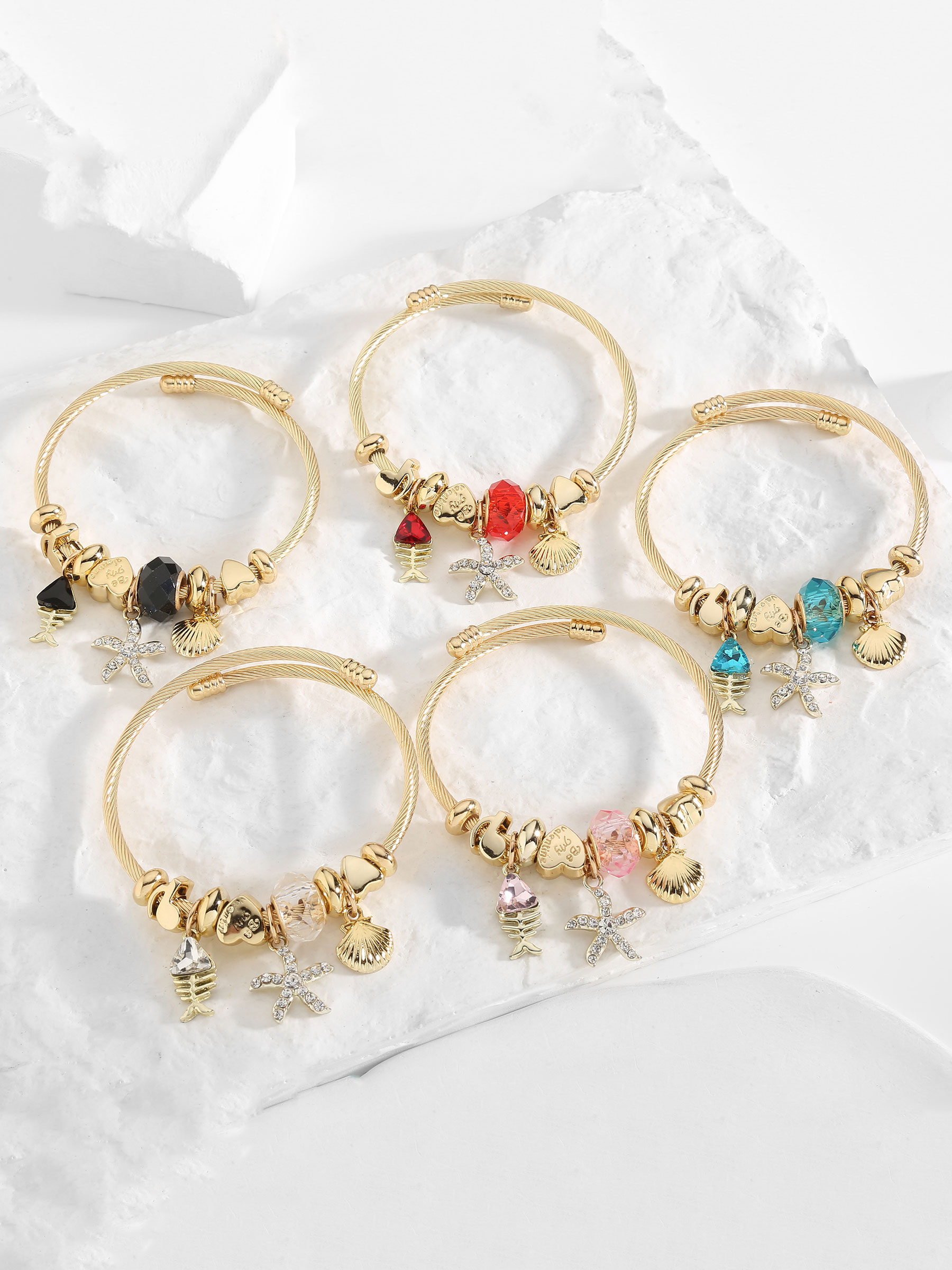 Detalles de pulsera de acero inoxidable charm estrella de mar con circonitas BS-XG20005-ORO