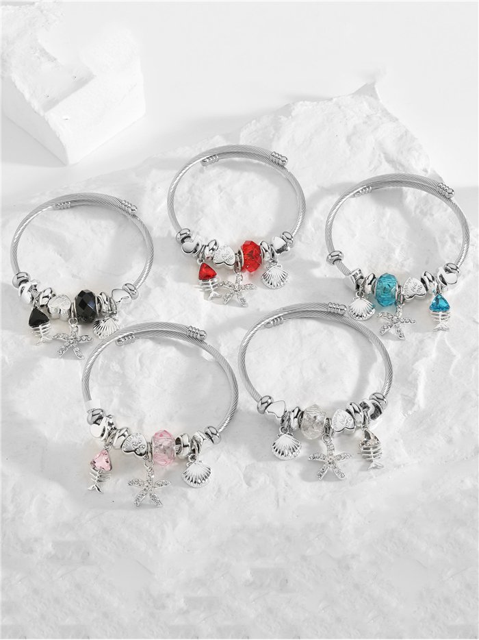 Detalles de pulsera de acero inoxidable charm estrella de mar con circonitas BS-XG10005-PLATA