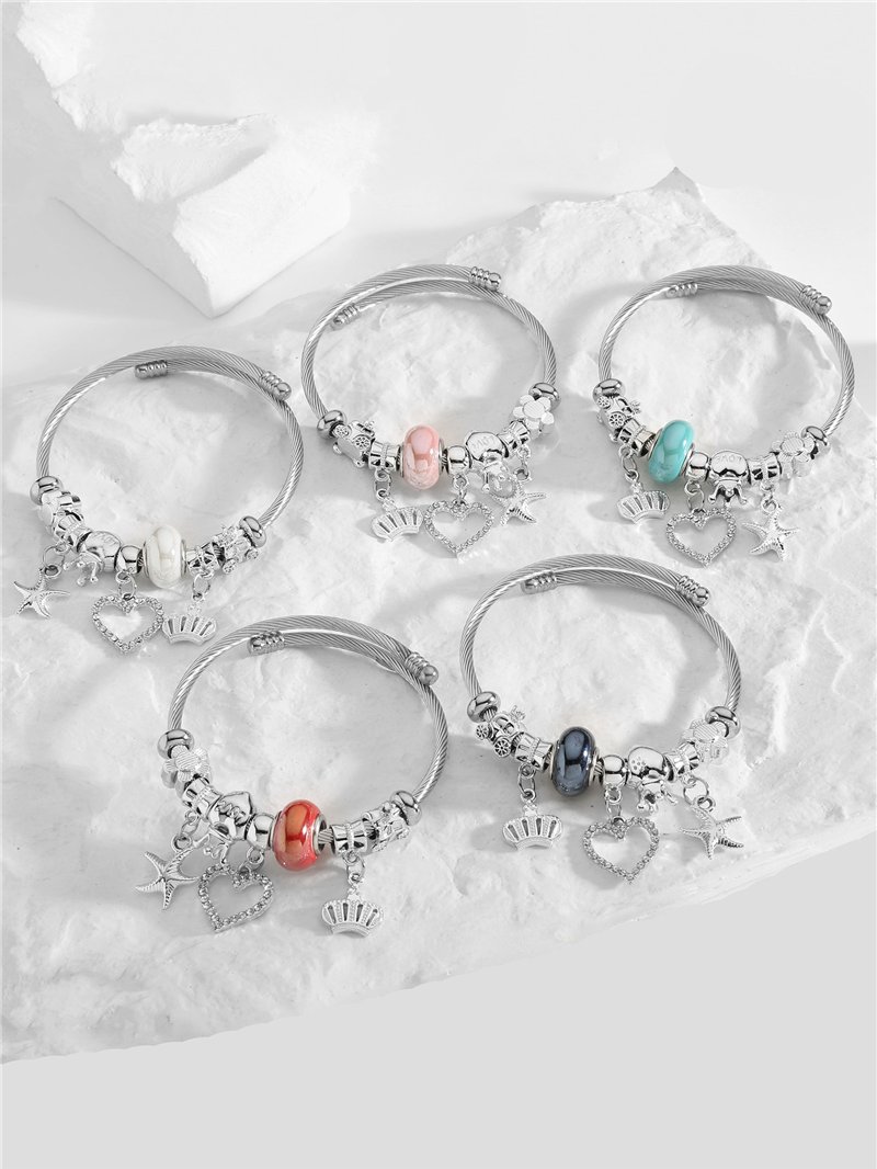 Detalles de pulsera de acero inoxidable charm corazón con circonitas BS-XG10017-PLATA
