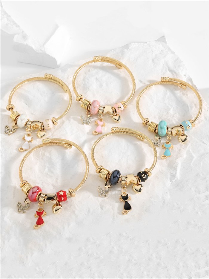 Detalles de pulsera de acero inoxidable charm gato esmaltado BS-XG20010-ORO