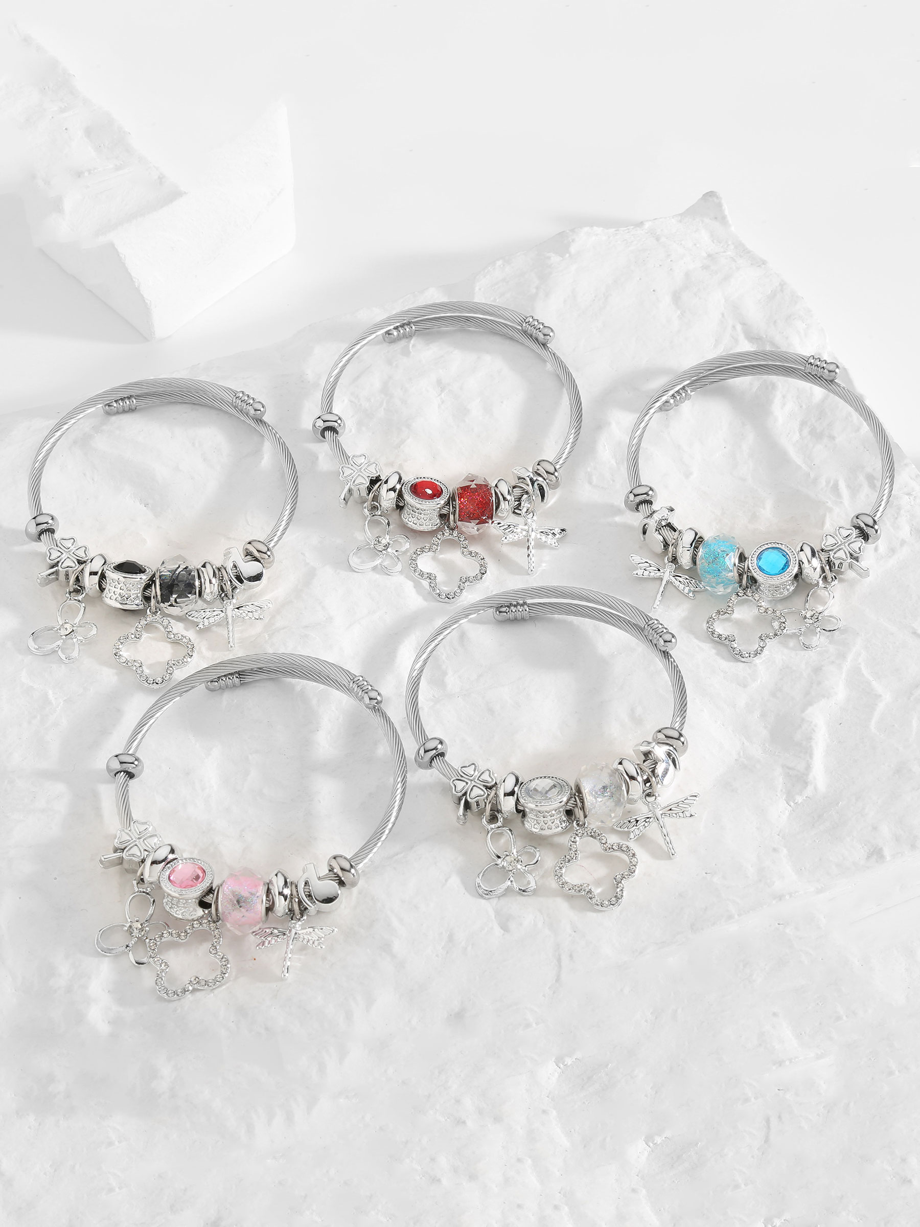 Detalles de pulsera de acero inoxidable charm trébol con circonitas BS-XG10008-PLATA