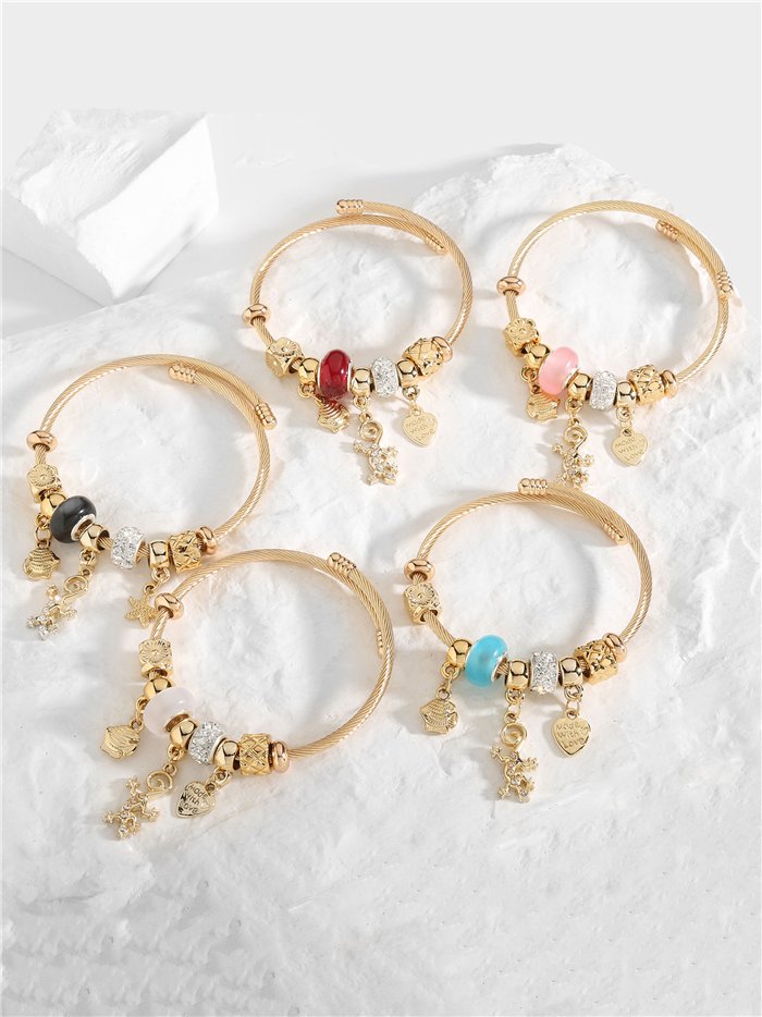 Detalles de pulsera de acero inoxidable charm lagarto con circonitas BS-LQ20120-ORO