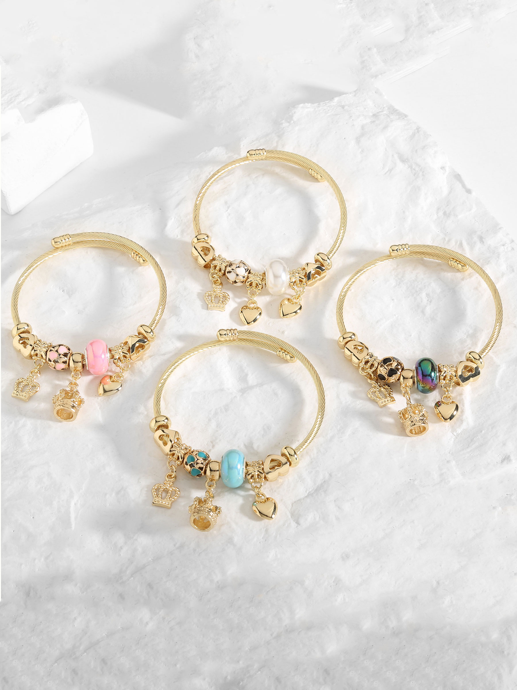 Detalles de pulsera de acero inoxidable charm coronas BS-LQ20146-ORO