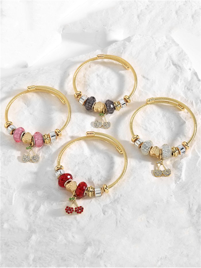Detalles de pulsera de acero inoxidable charm cerezas con circonitas BS-LQ20154-ORO