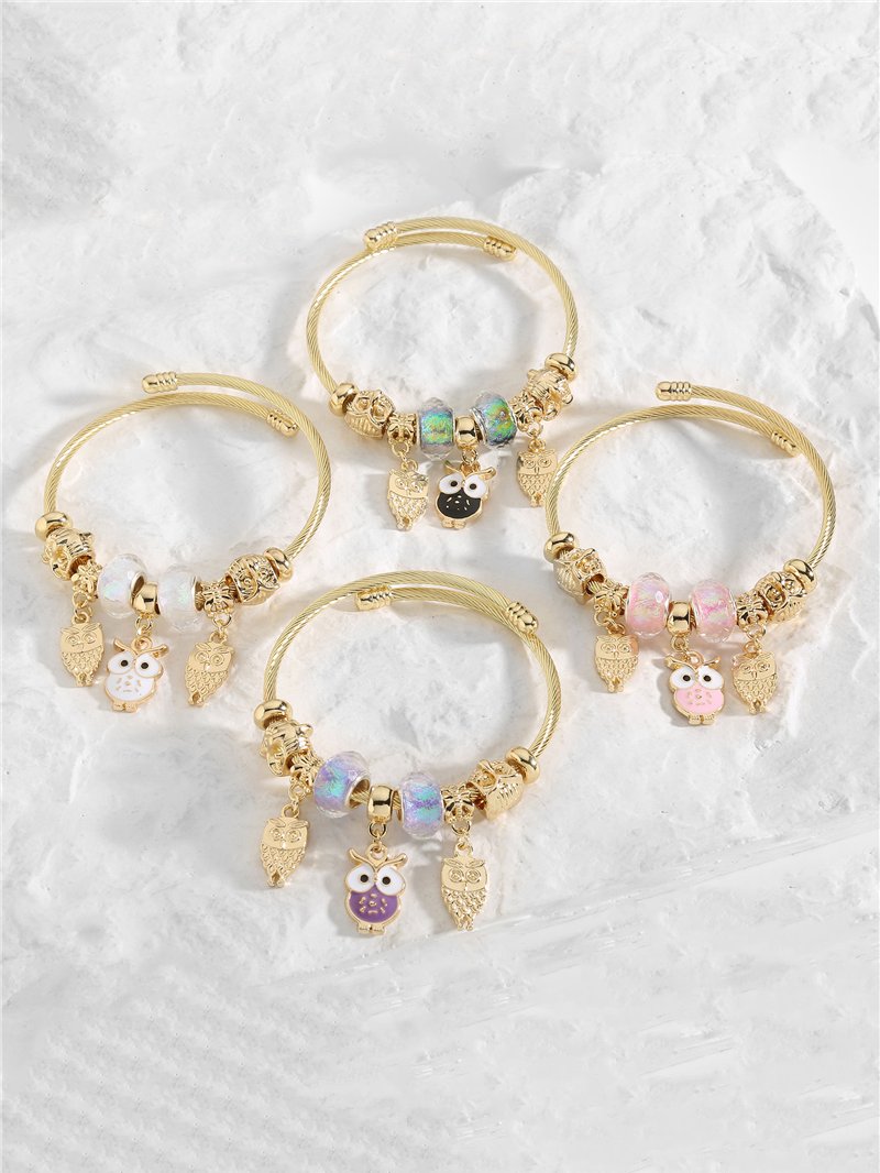 Detalles de pulsera de acero inoxidable charm búhos esmaltados BS-LQ20210-ORO