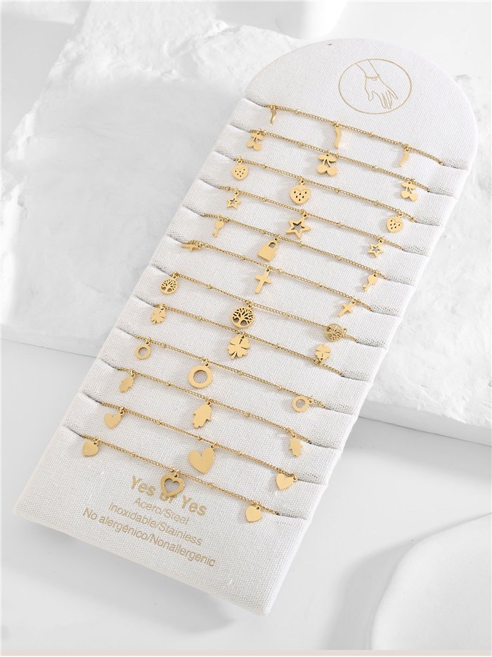 Detalles de conjunto de 12 pulseras cadenas con colgantes - acero inoxidable BS-DH61889