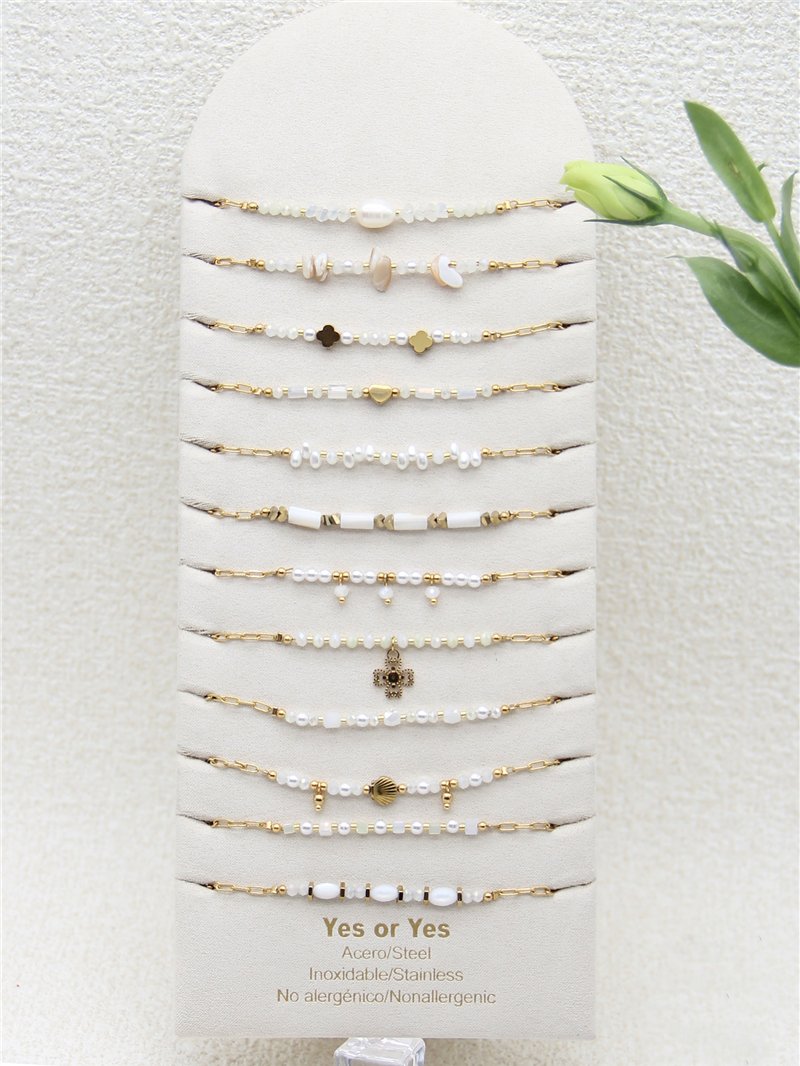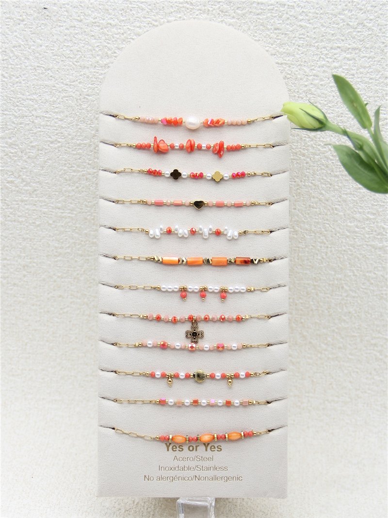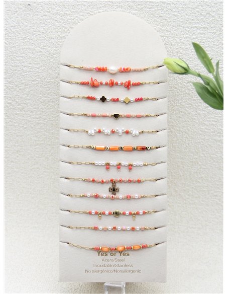 Detalles de conjunto de 12 pulseras cadenas con abalorios - acero inoxidable - expositor incluido BS-LXZ8182