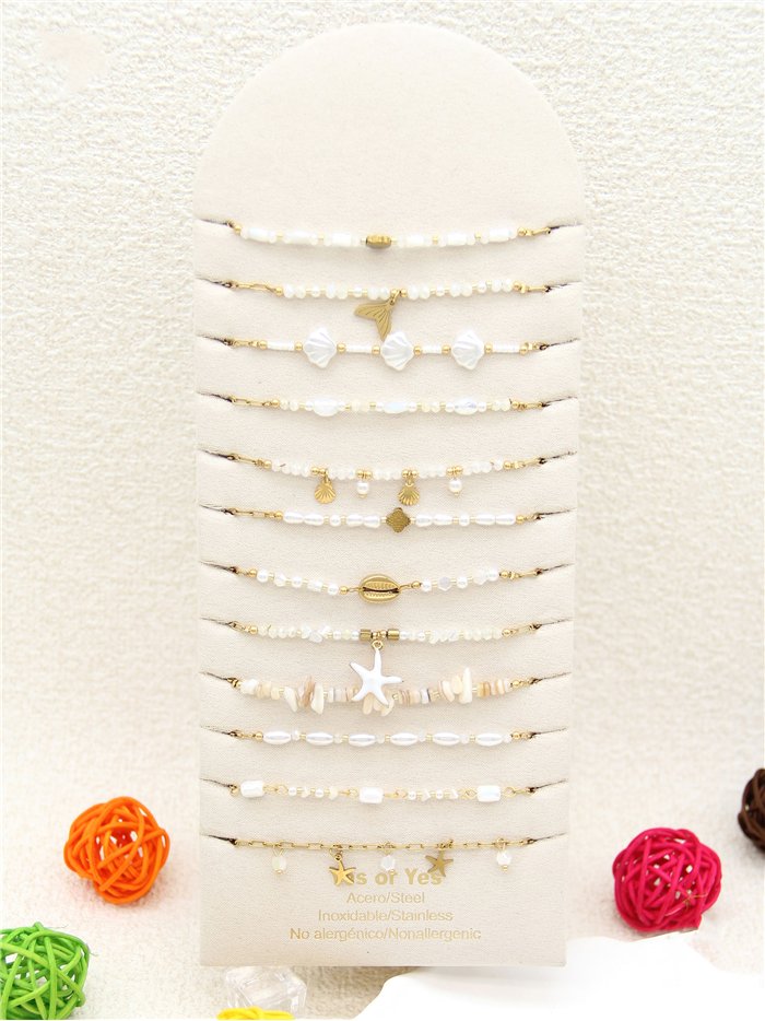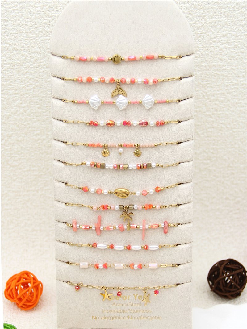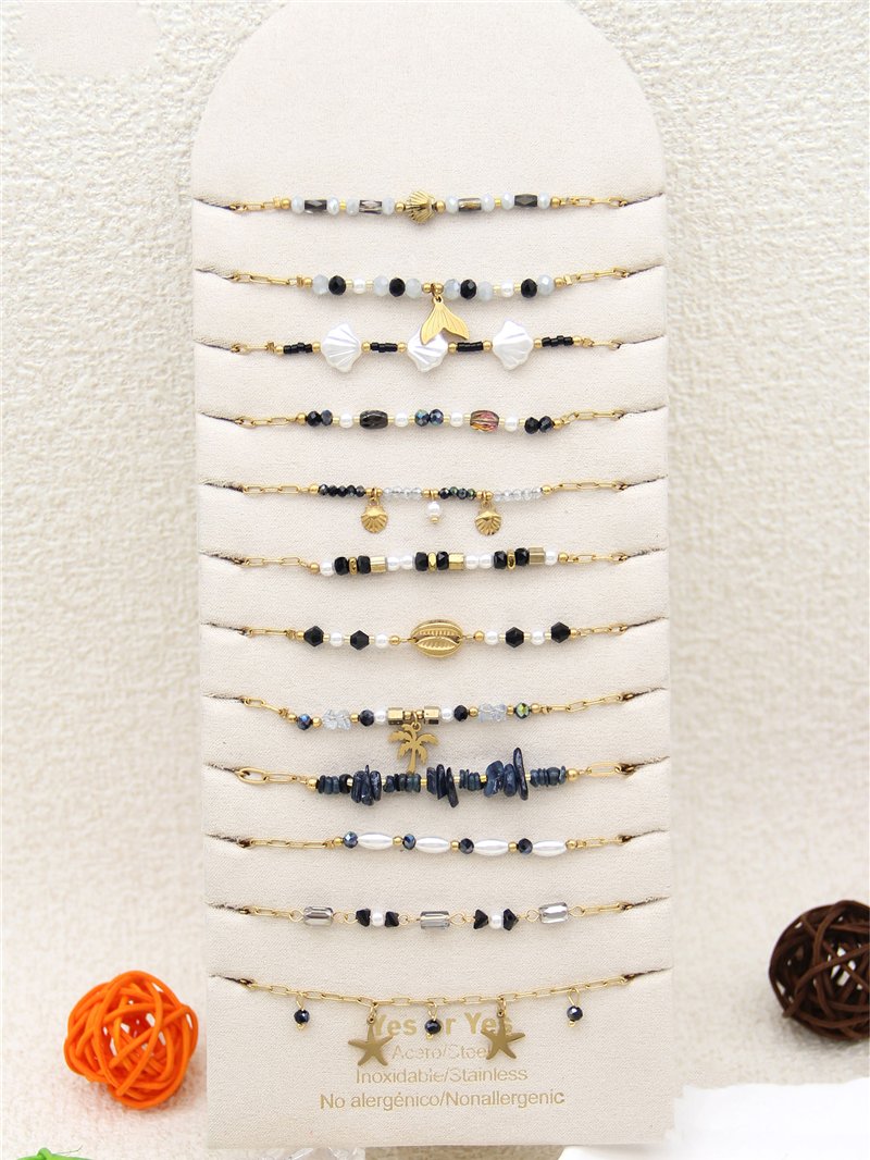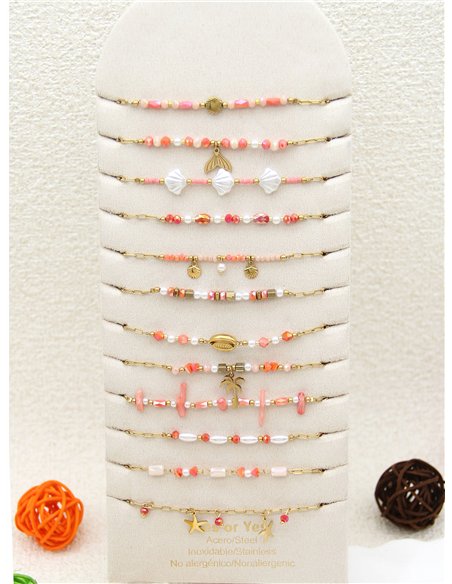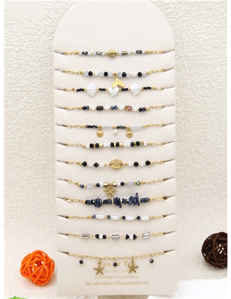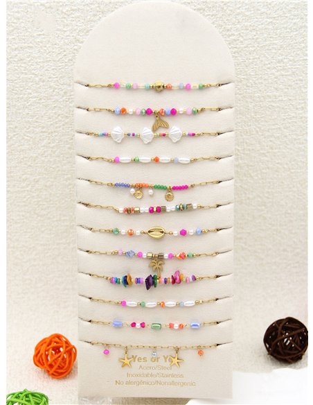 Conjunto de 12 pulseras cadenas con colgantes y abalorios - Acero inoxidable - Expositor incluido