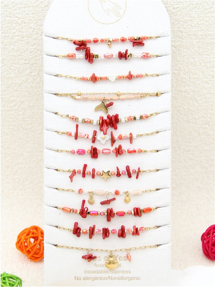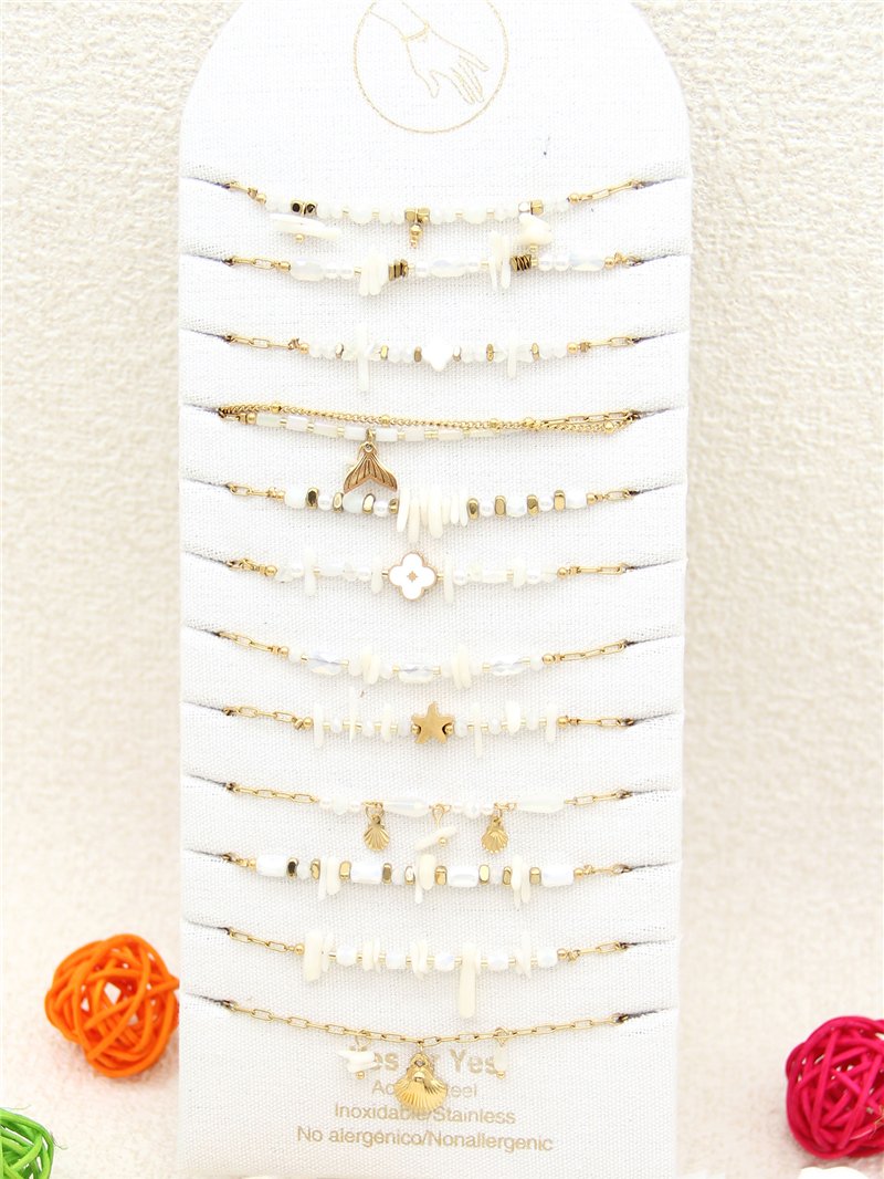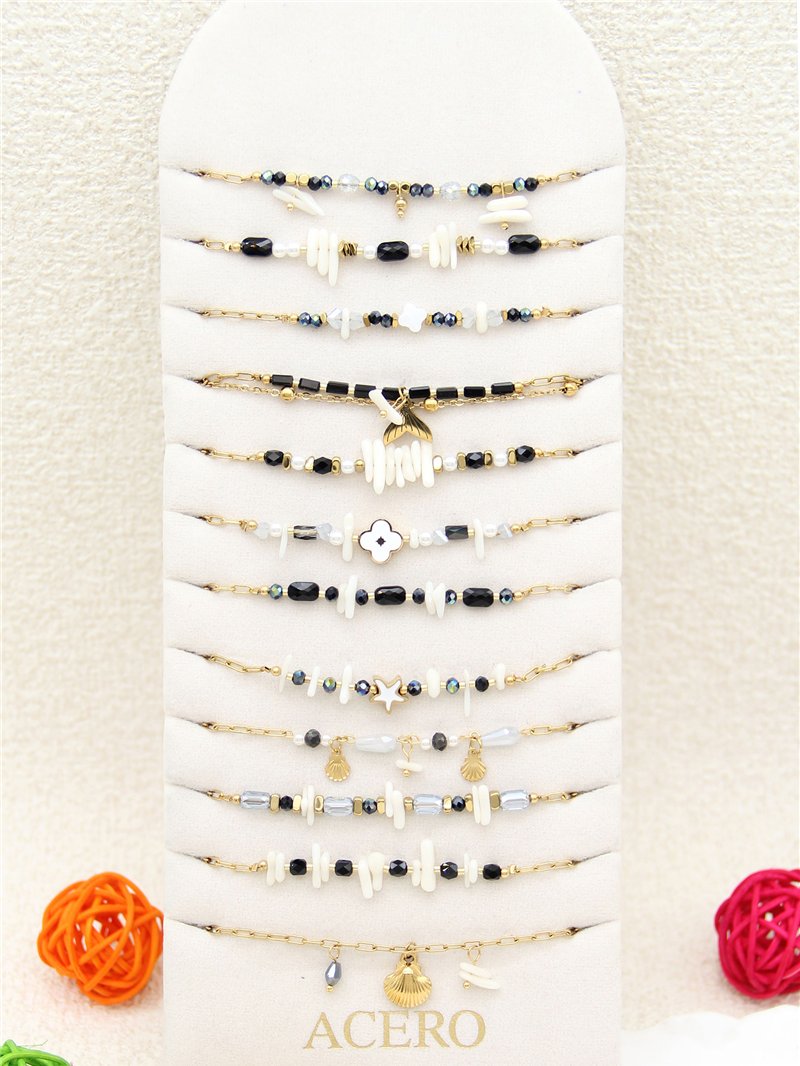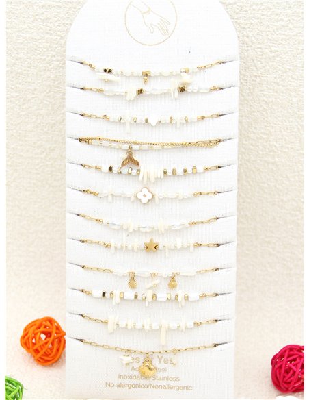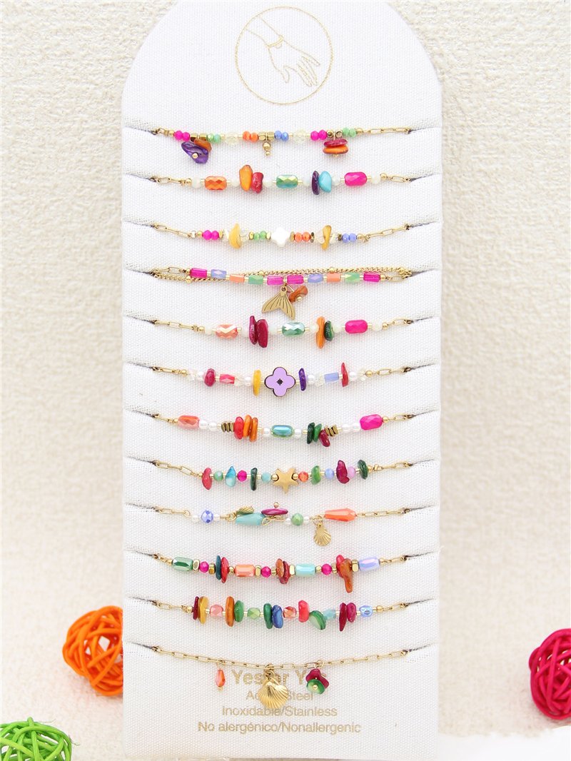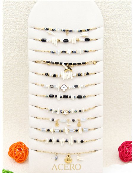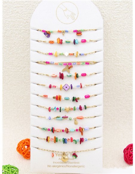 Conjunto de 12 pulseras con piedras y charms - Acero inoxidable - Expositor incluido