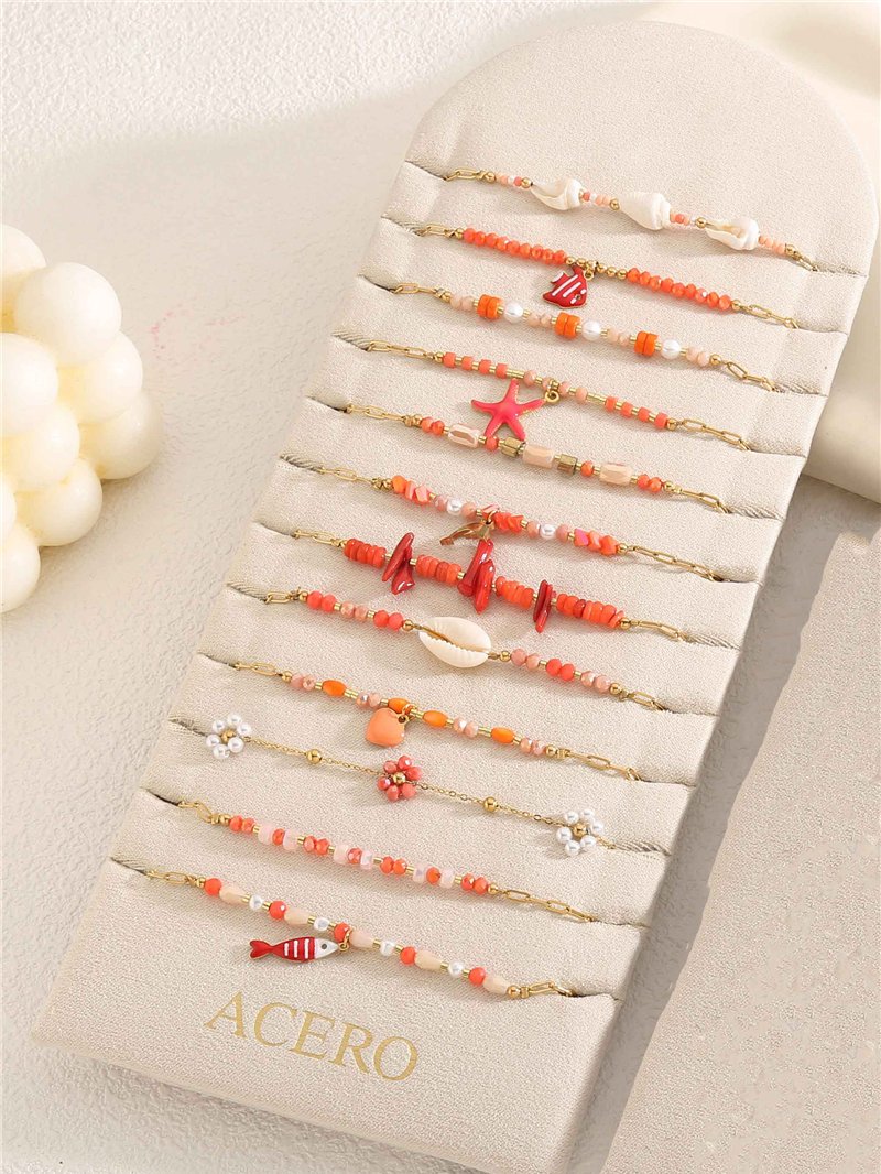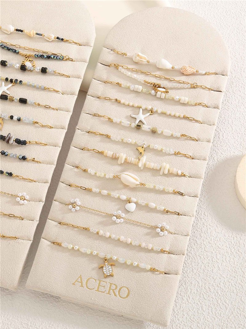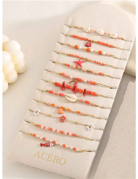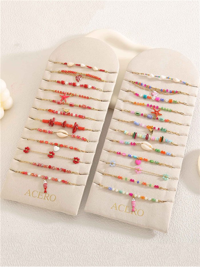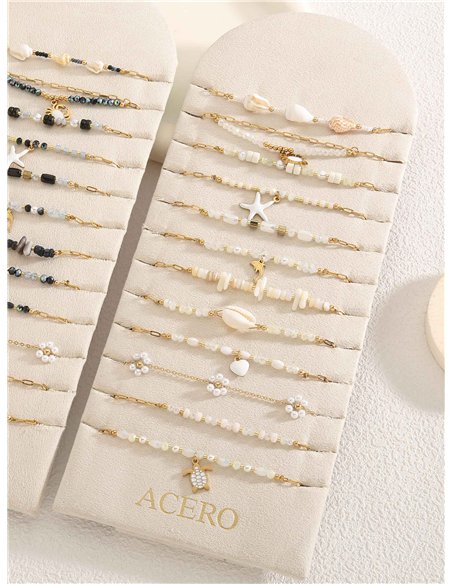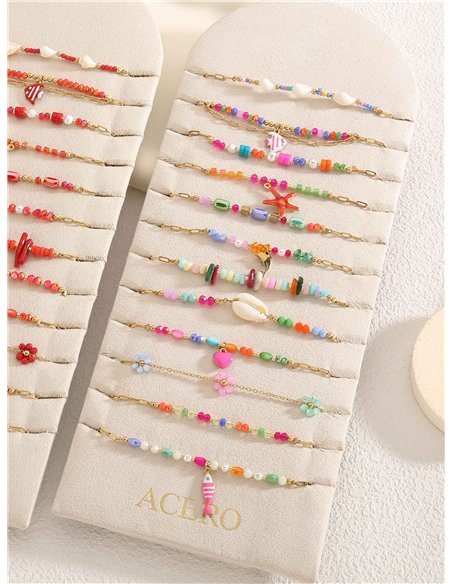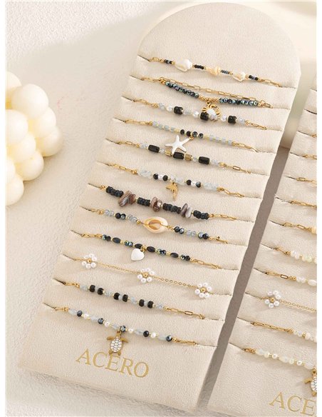 Conjunto de 12 pulseras cadenas con colgantes y abalorios - Acero inoxidable - Expositor incluido