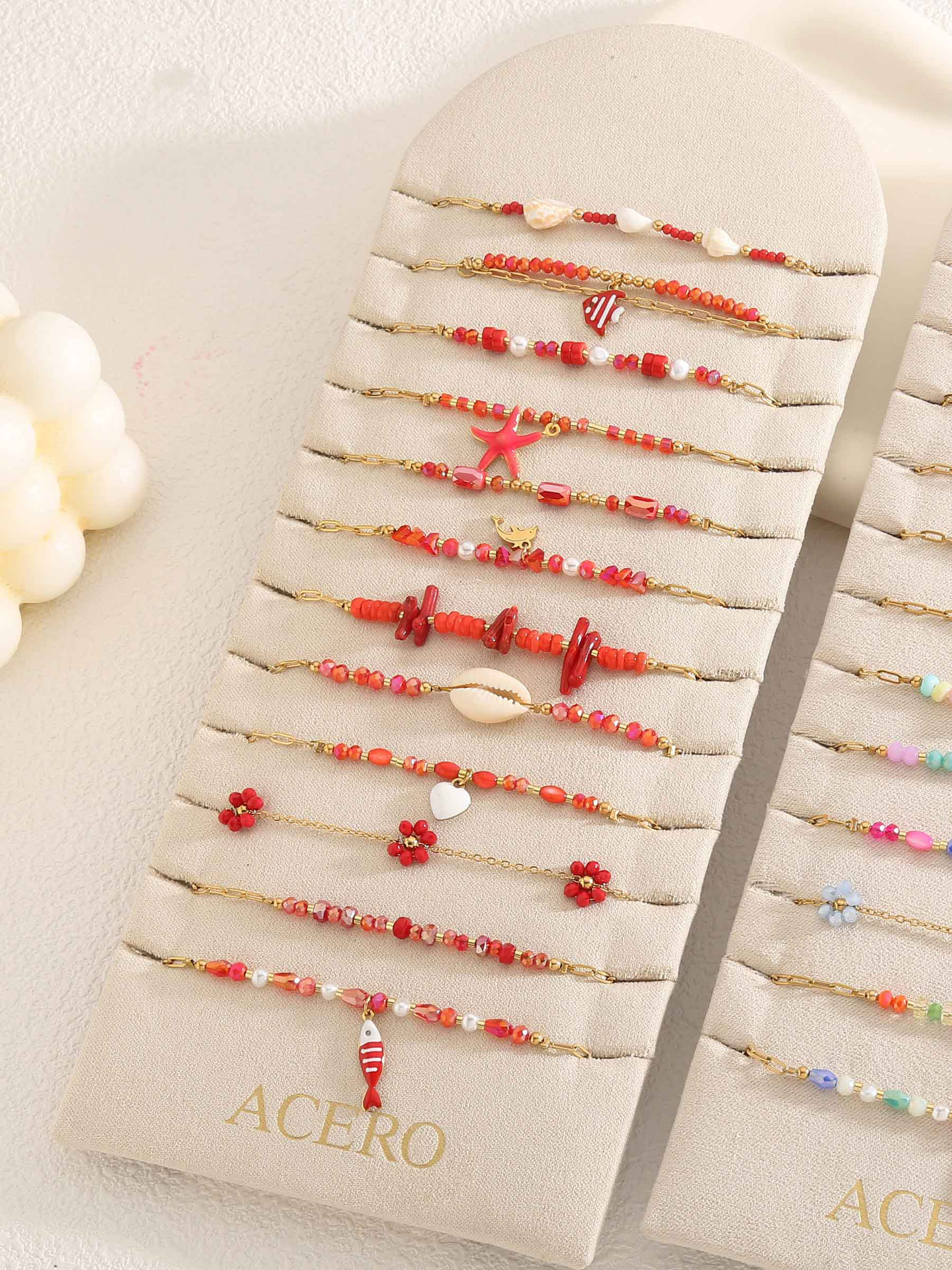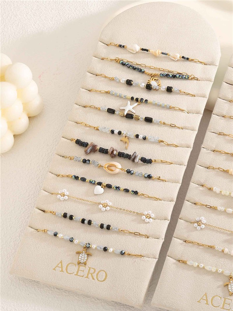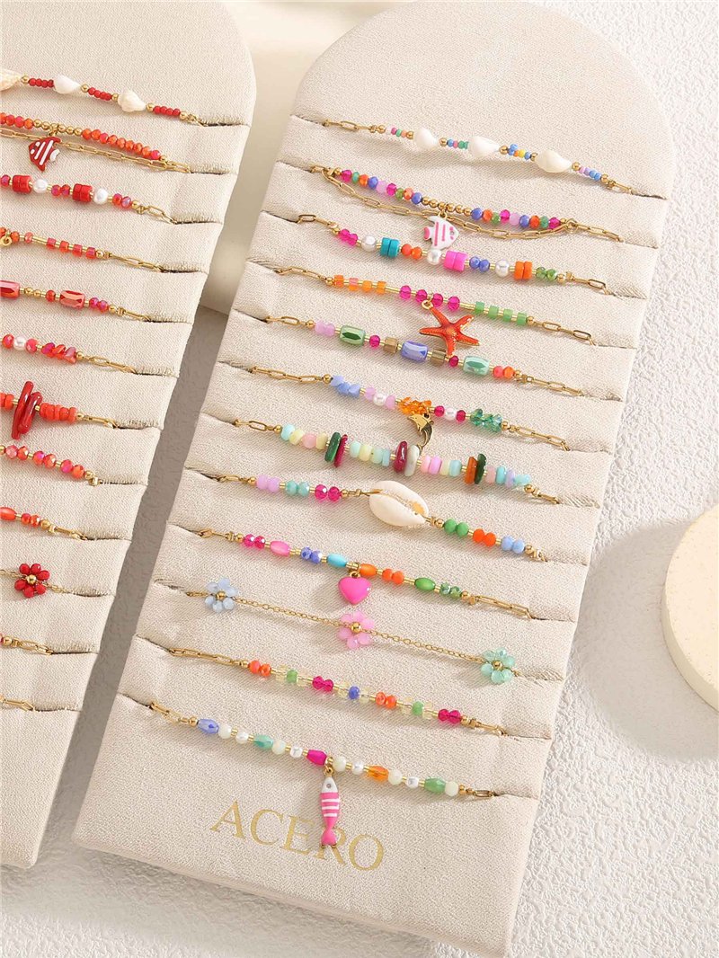 Conjunto de 12 pulseras cadenas con colgantes y abalorios - Acero inoxidable - Expositor incluido