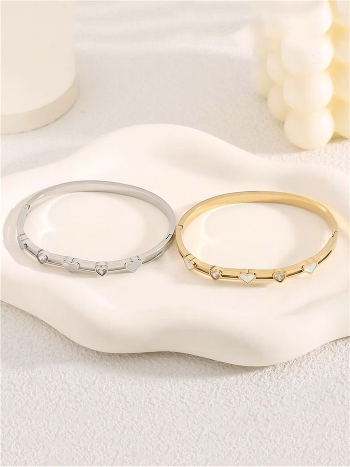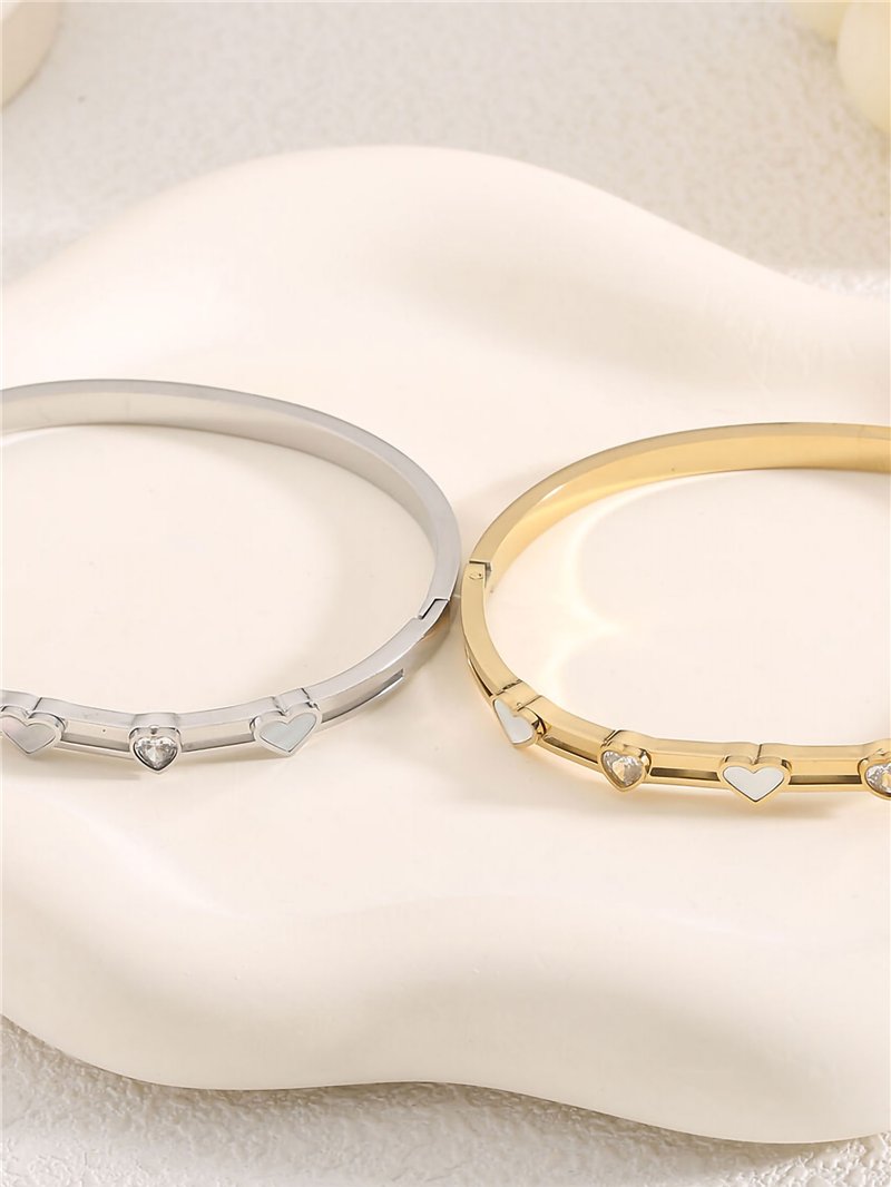 Detalles de pulsera rígida corazones de nácar con circonitas - acero inoxidable BS-TG079-TG080