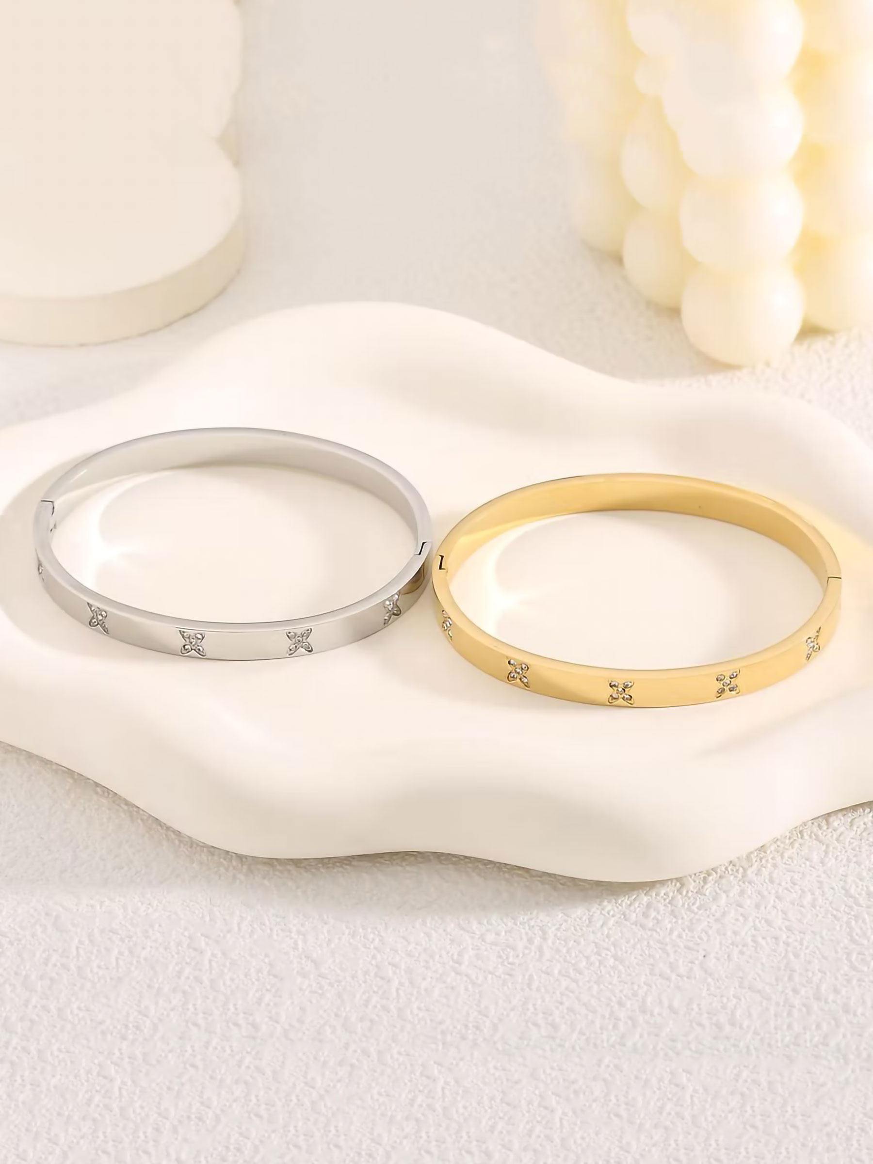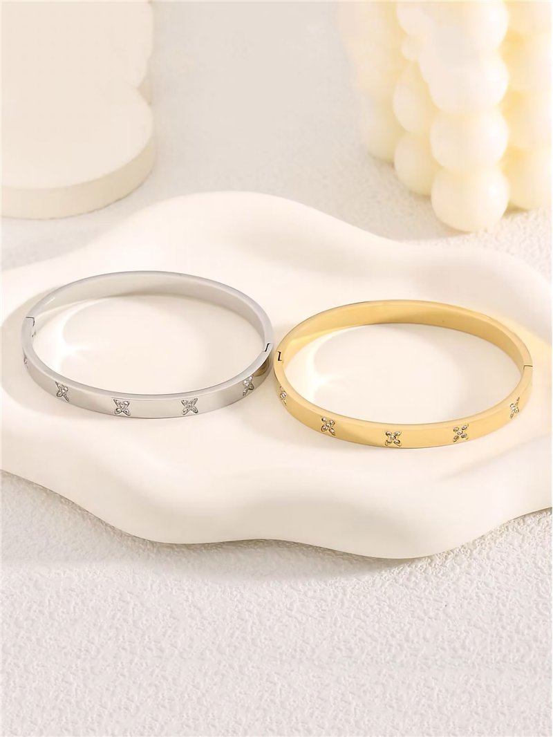 Detalles de pulsera rígida trébol con circonitas - acero inoxidable BS-TG085-TG086