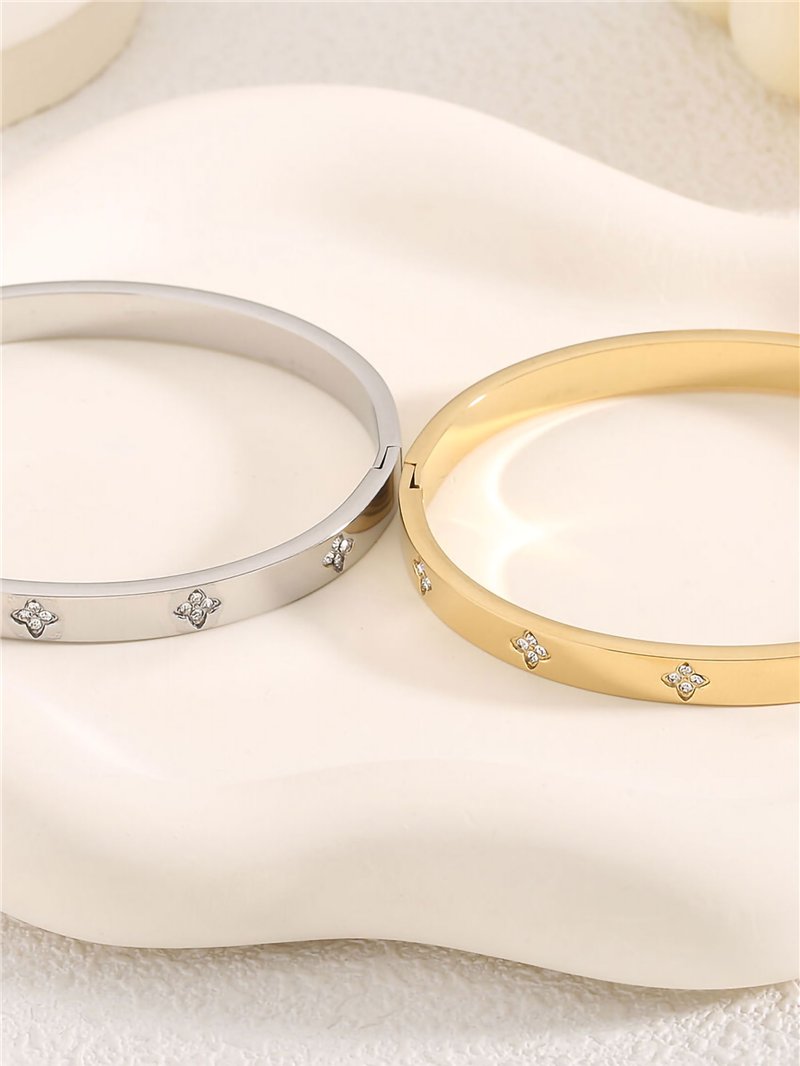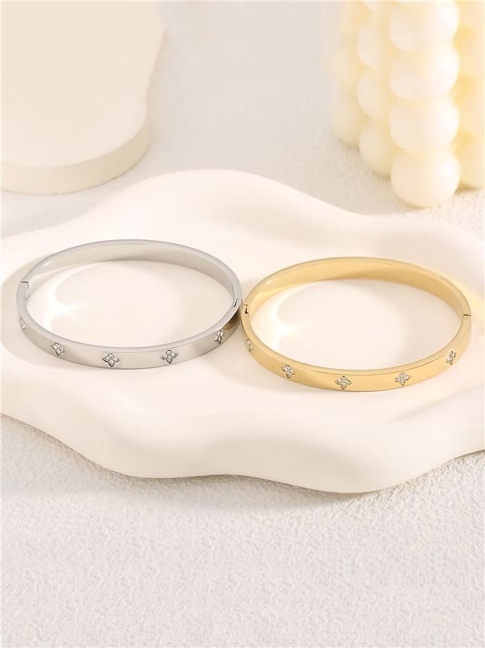 Detalles de pulsera rígida trébol con circonitas - acero inoxidable BS-TG113-TG114