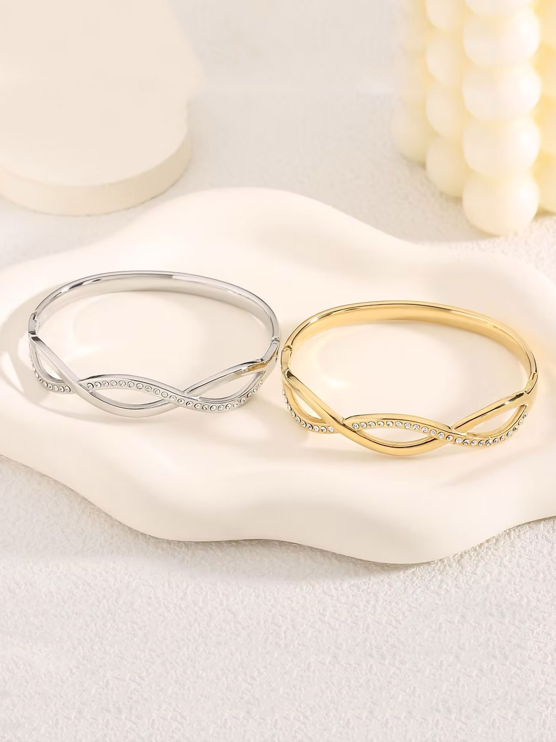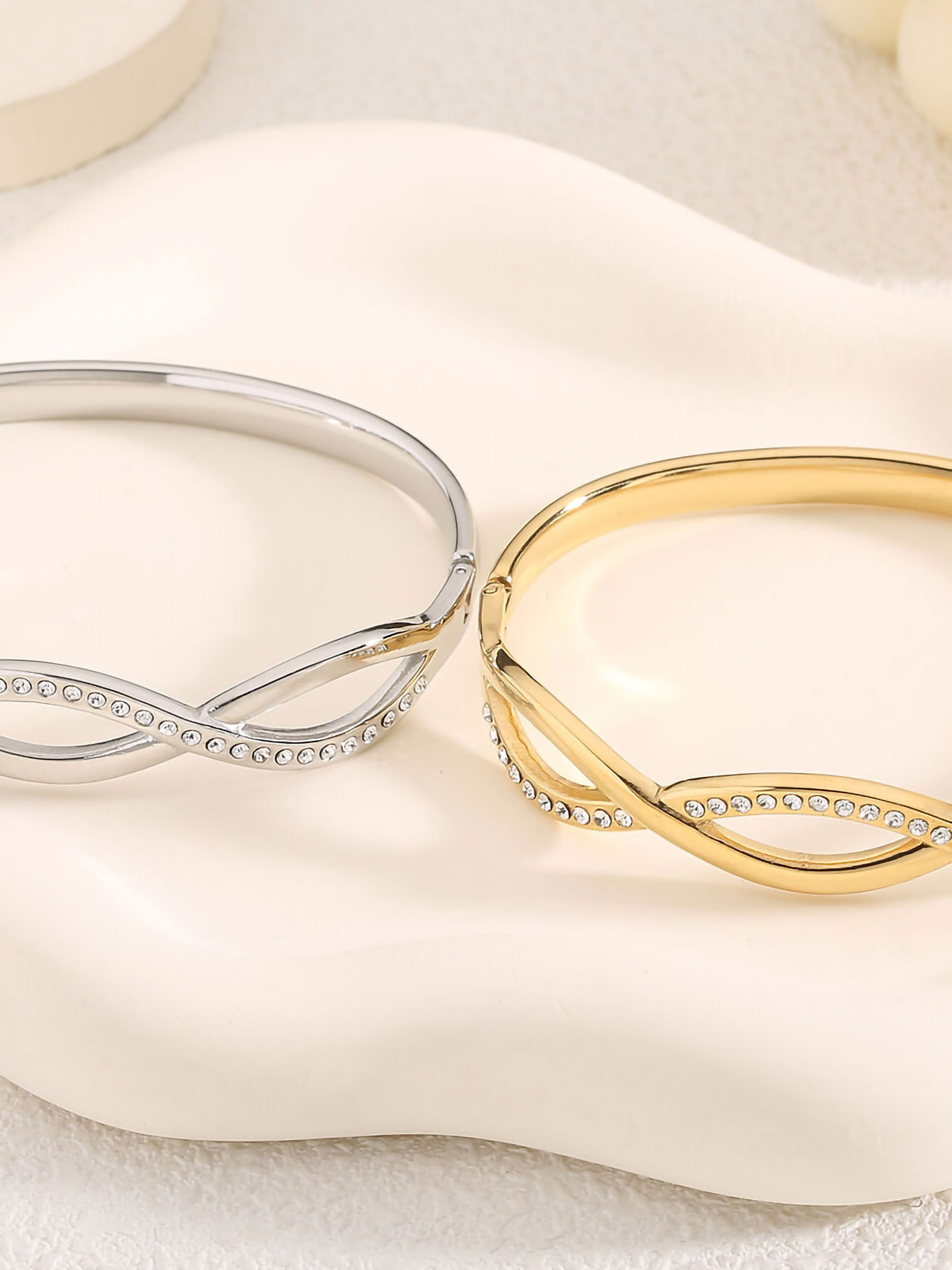 Detalles de pulsera rígida trenzada con circonitas - acero inoxidable BS-TG121-TG122
