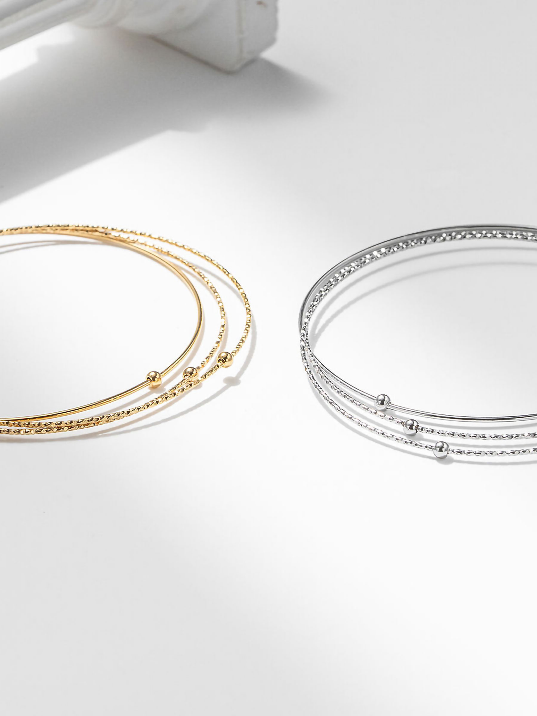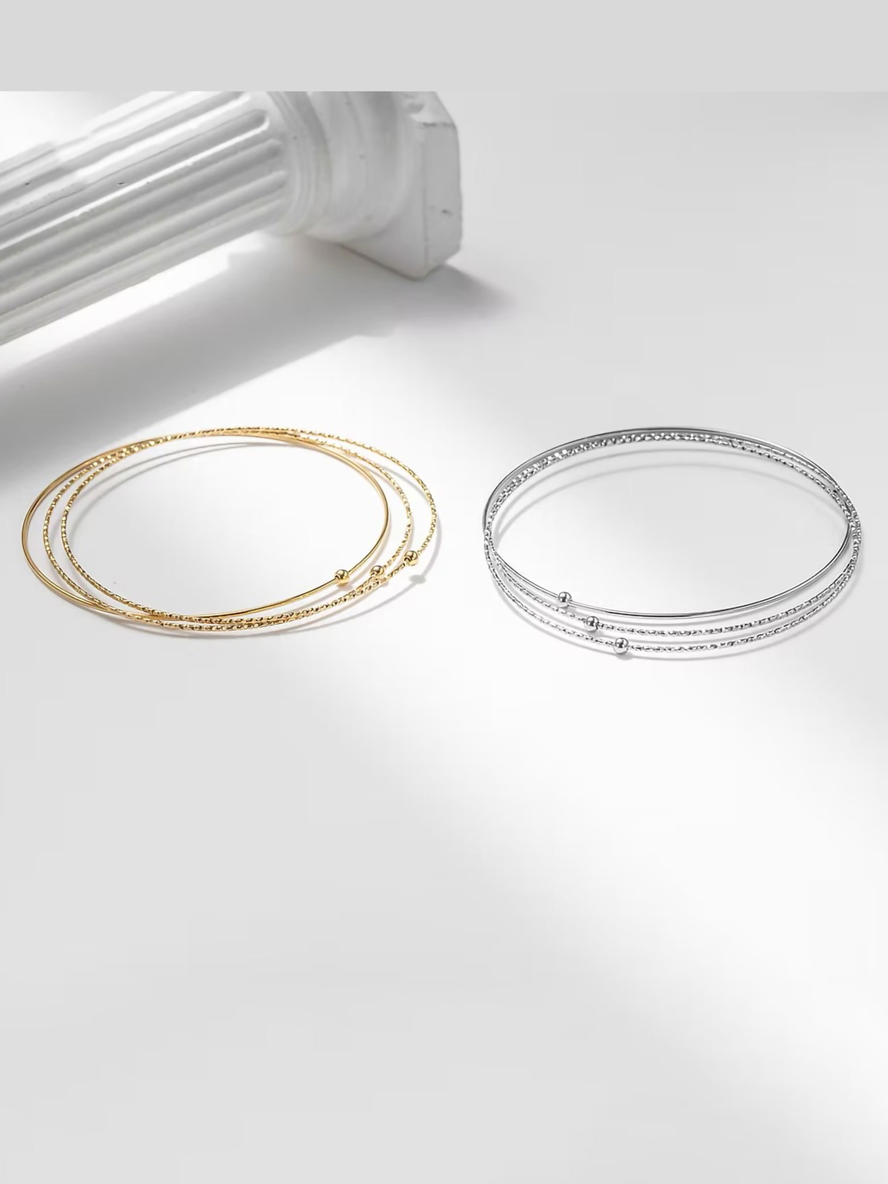 Pulsera triple aros de acero. Detalle charm de abalorios.