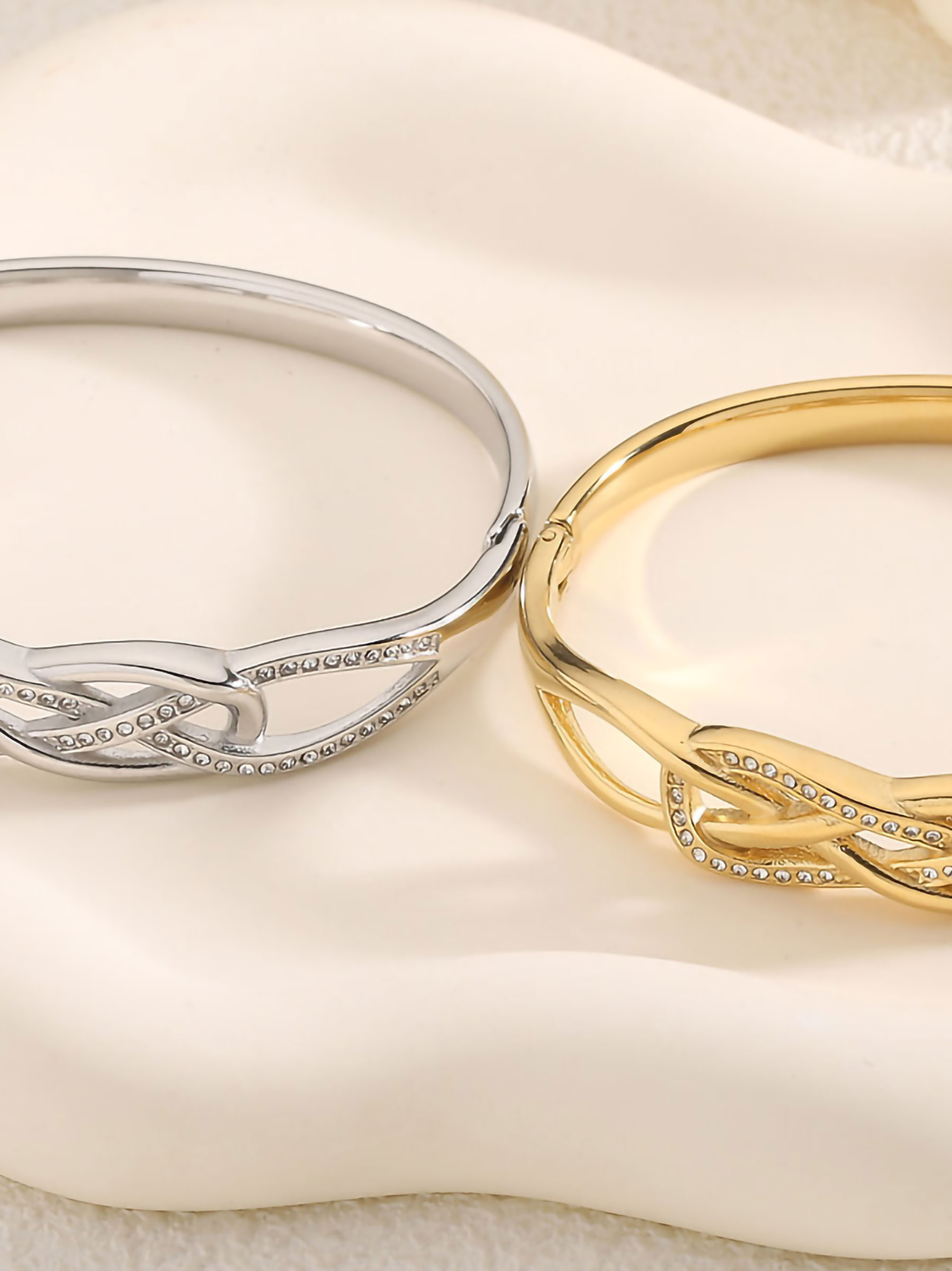 Detalles de pulsera rígida trenzado con circonita BS-MSN37006-MSN37007-1