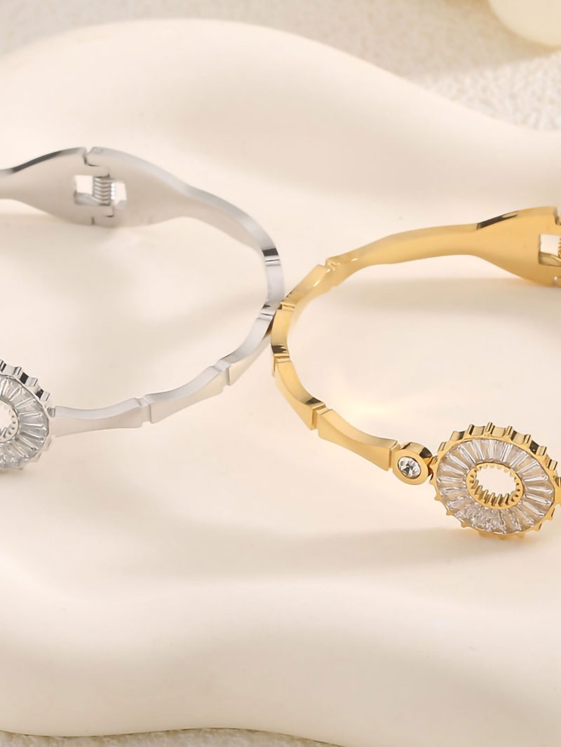 Detalles de pulsera rígida medallón con circonita BS-MSN37024-MSN37025