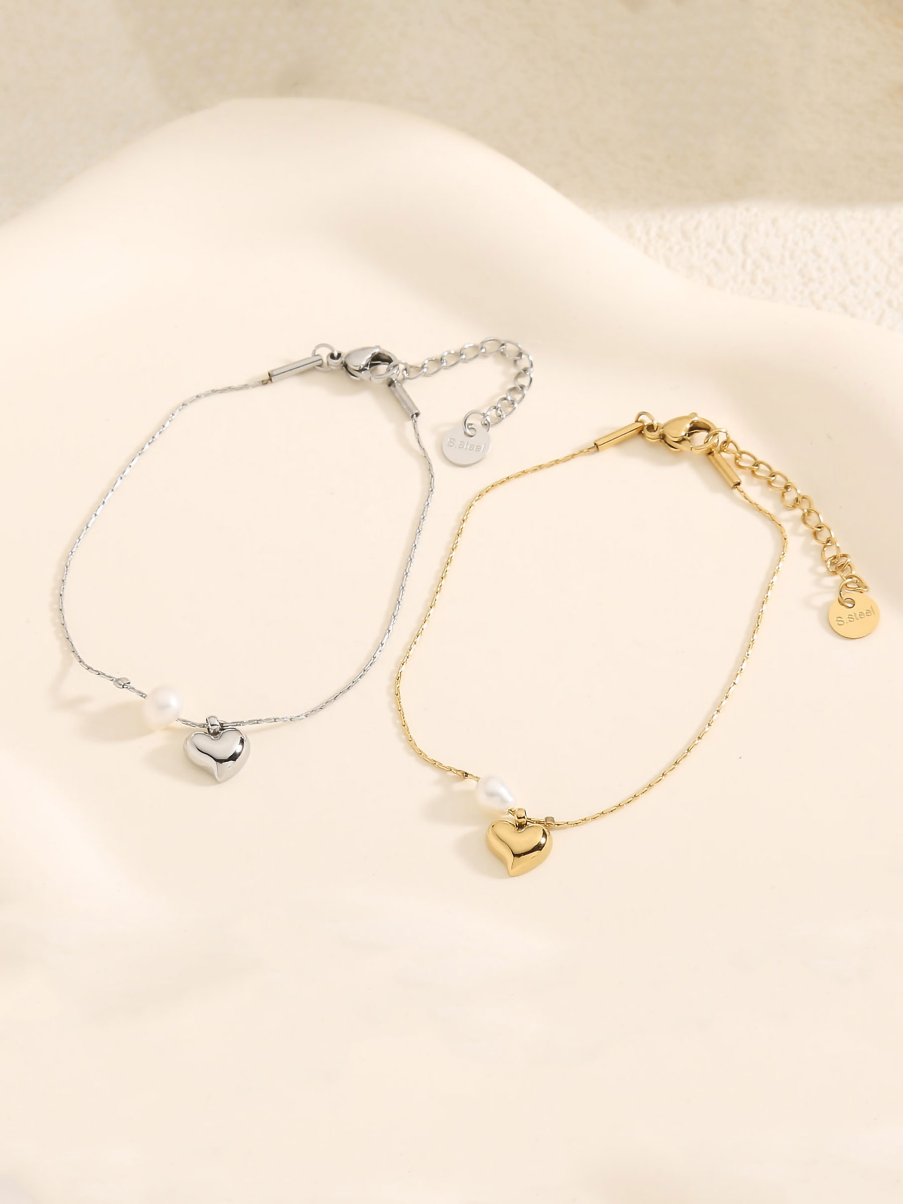 Detalles de pulsera charm corazón detall perla BS-QK576-QK577