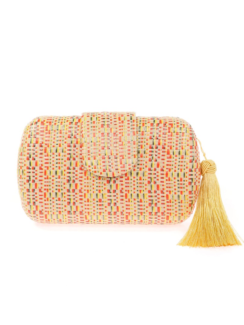 Bolso clutch de fiesta rafia borlas multi-naranja
