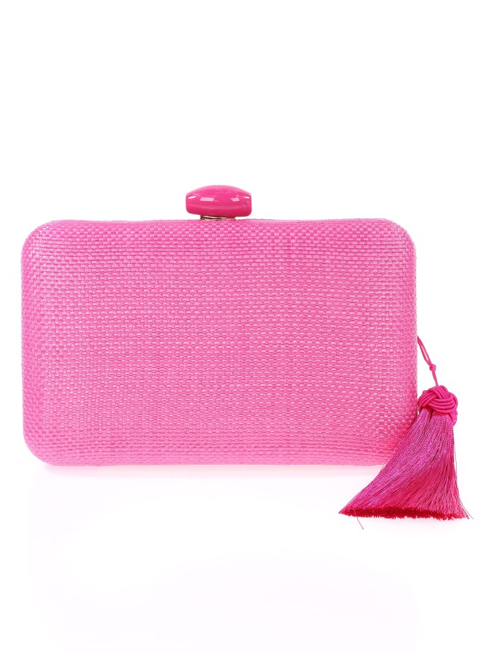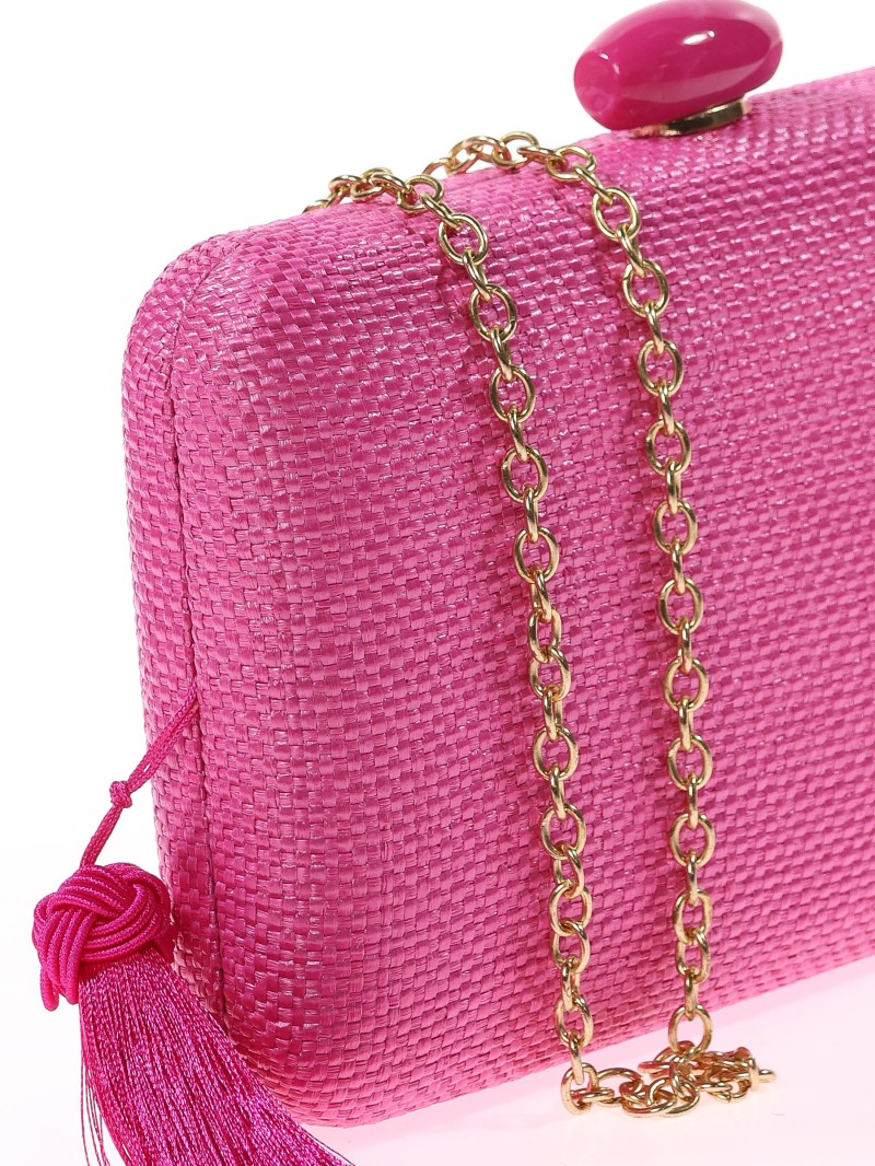 Detalles de AD-41458 FUCSIA bolso clutch de fiesta rafia borlas