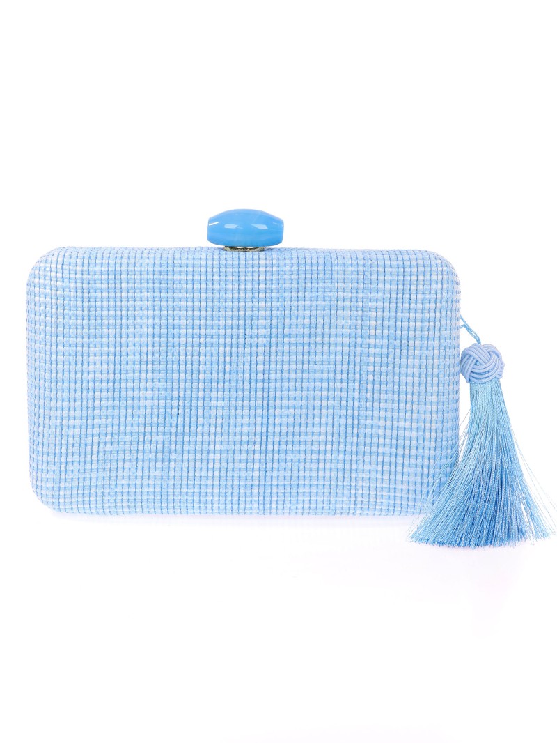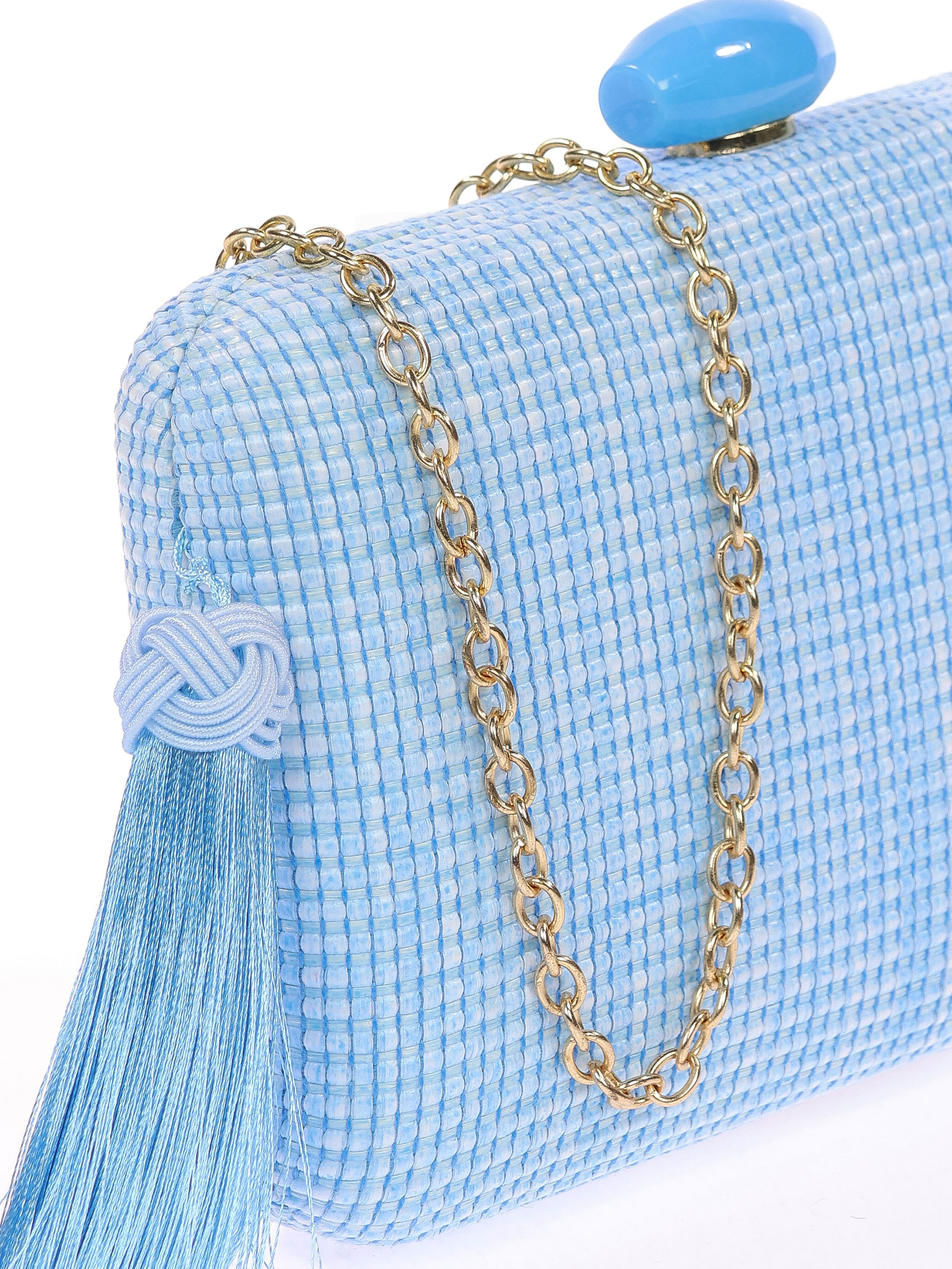 Detalles de AD-41458 AZUL-CLARO bolso clutch de fiesta rafia borlas