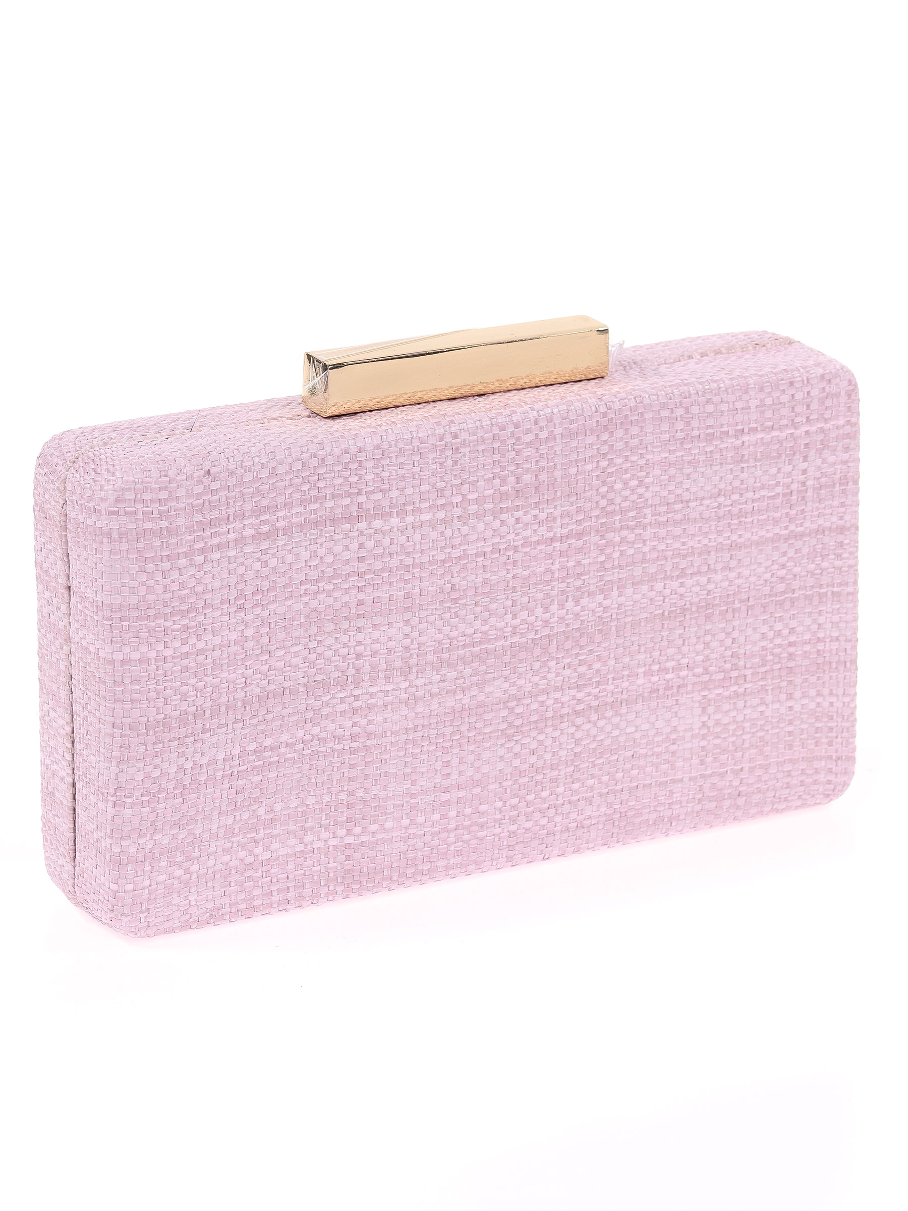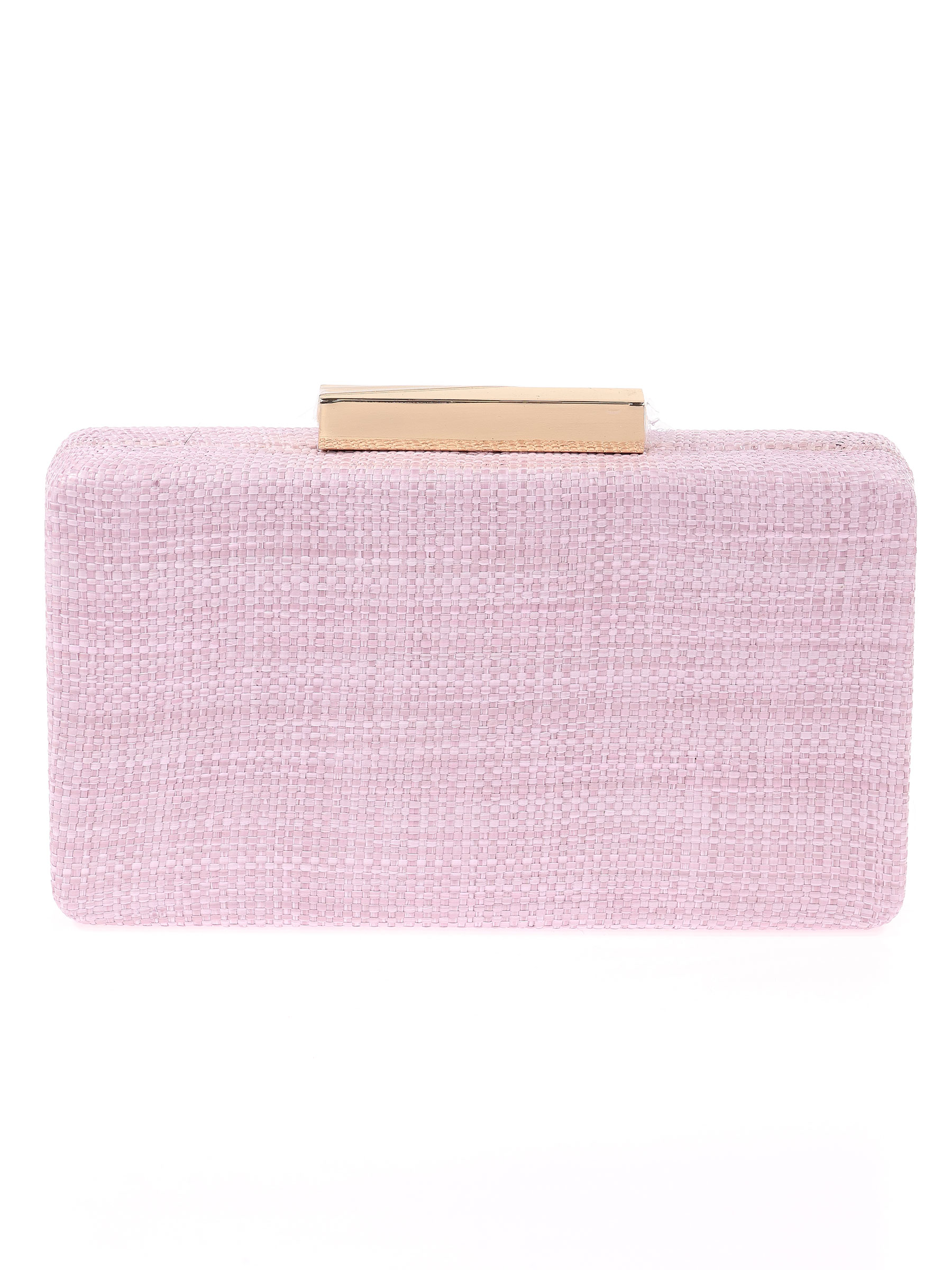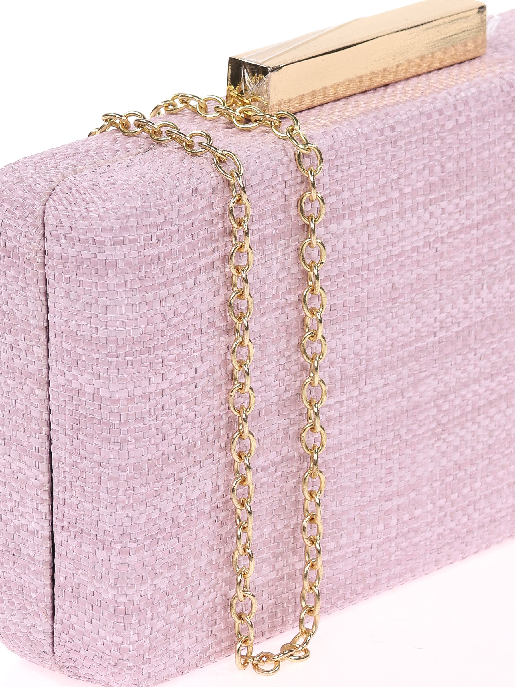Bolso de fiesta. Efecto rafia. Asa de hombro en cadena. Forro sin bolsillo interior. Cierre metálico dorado.