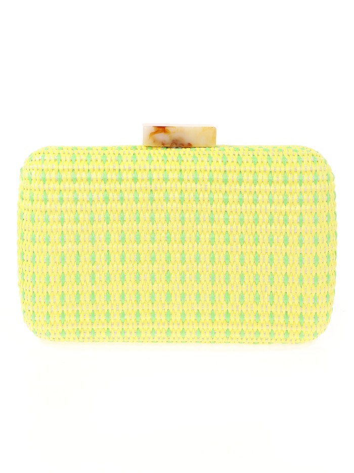 Bolso clutch de fiesta efecto rafia abalorio amarillo