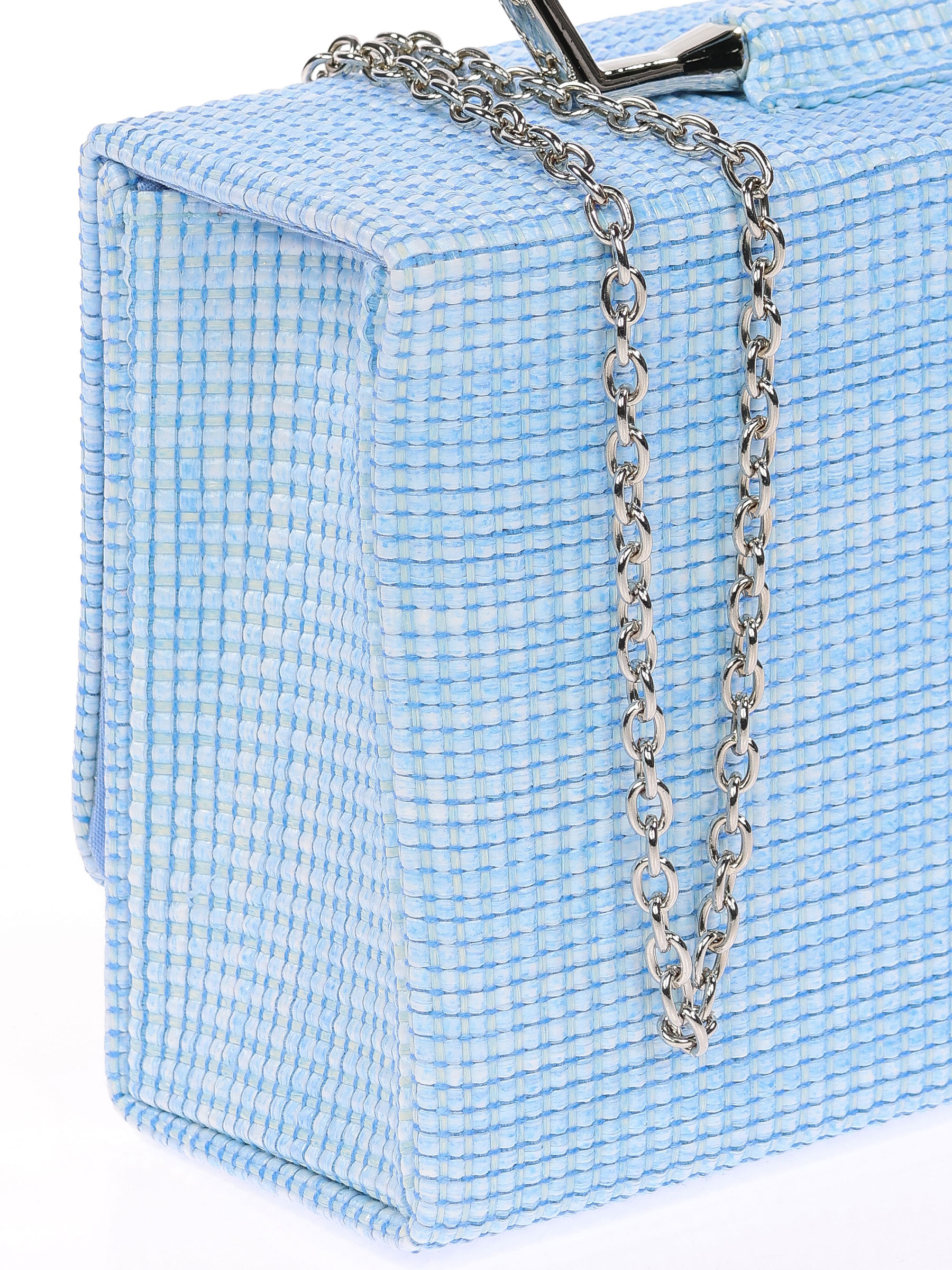 Bolso de fiesta. Efecto rafia. Asa de mano. Asa de hombro en cadena. Forro con bolsillo interior. Cierre mediante imán.