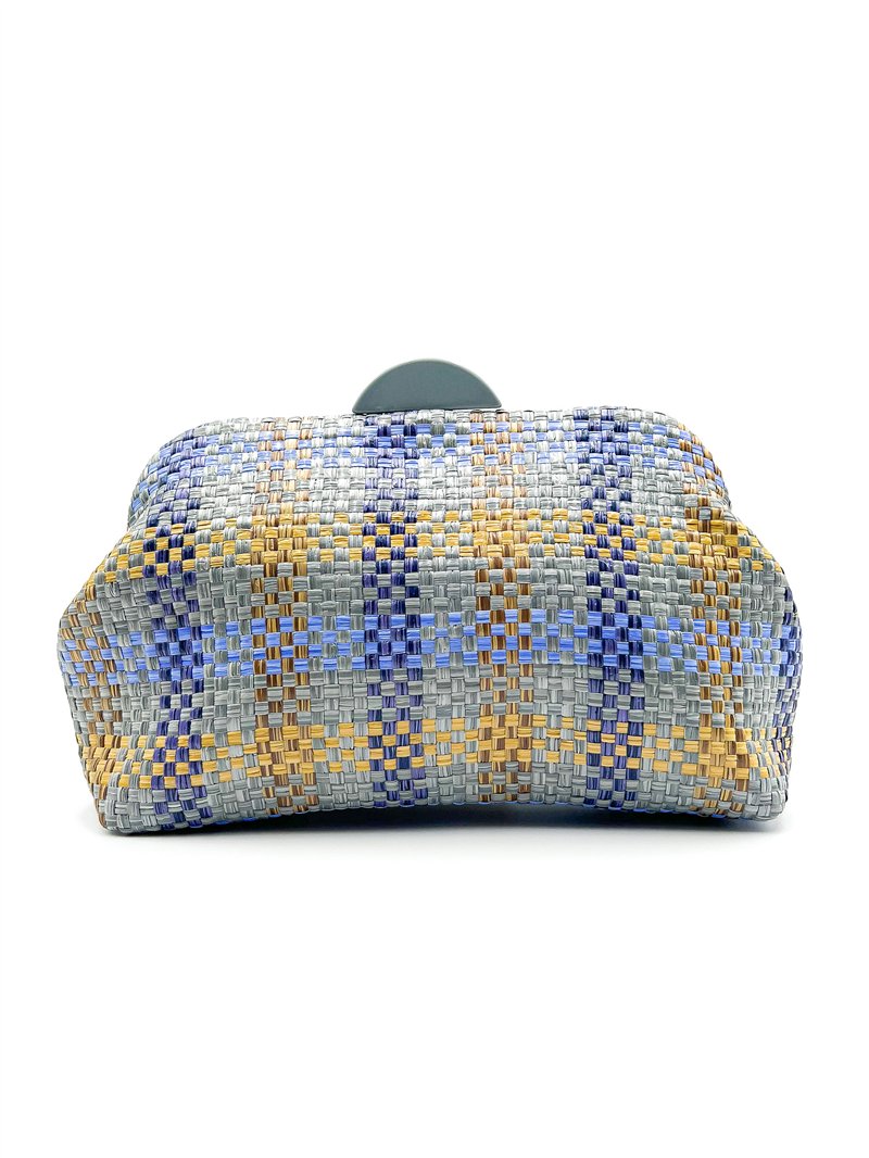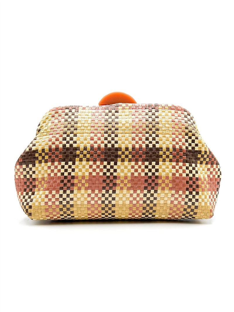 Cartera de fiesta. Trenzado multicolor con dibujo de cuadros. Cierre metálico superior.