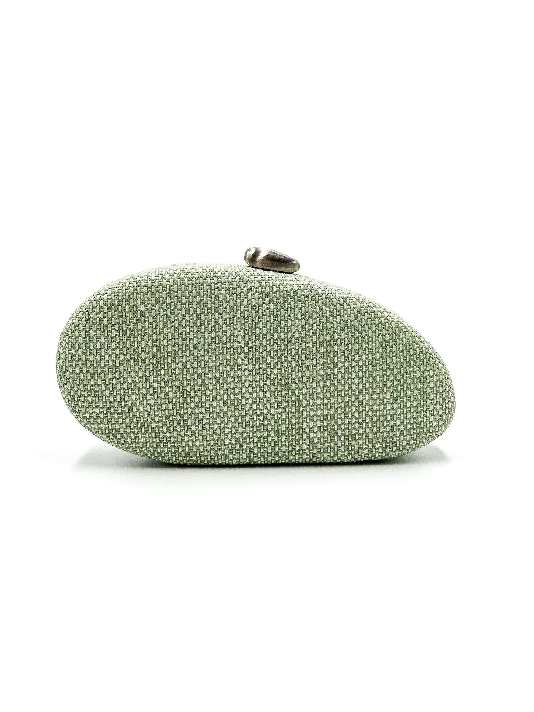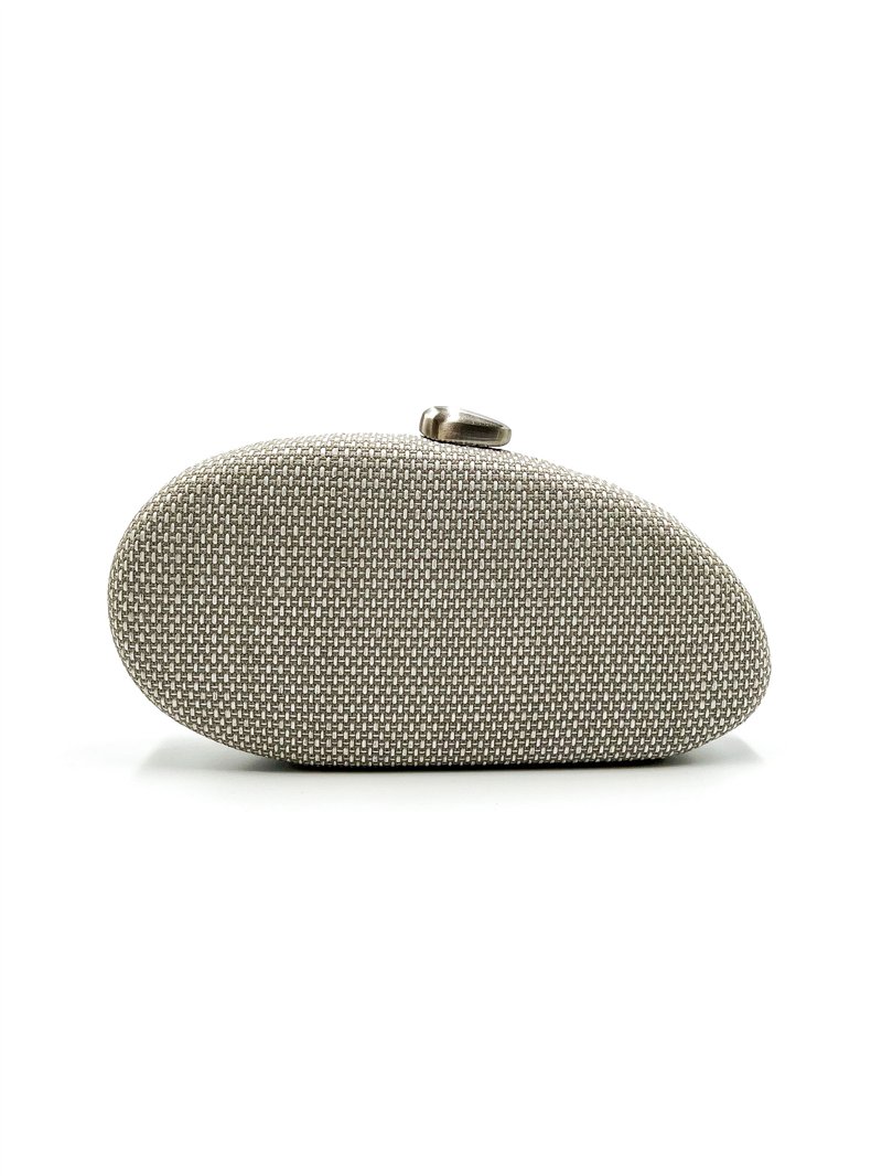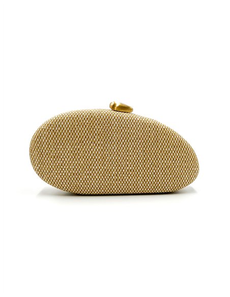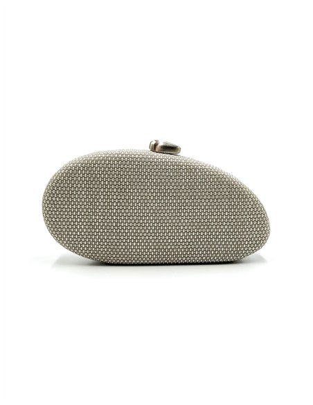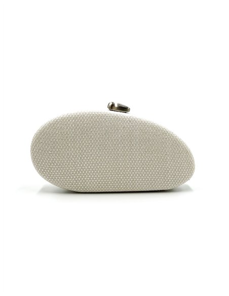Bolso de fiesta. Acabado texturizado. Forma ovalada rígida. Cierre superior con pieza metálica.