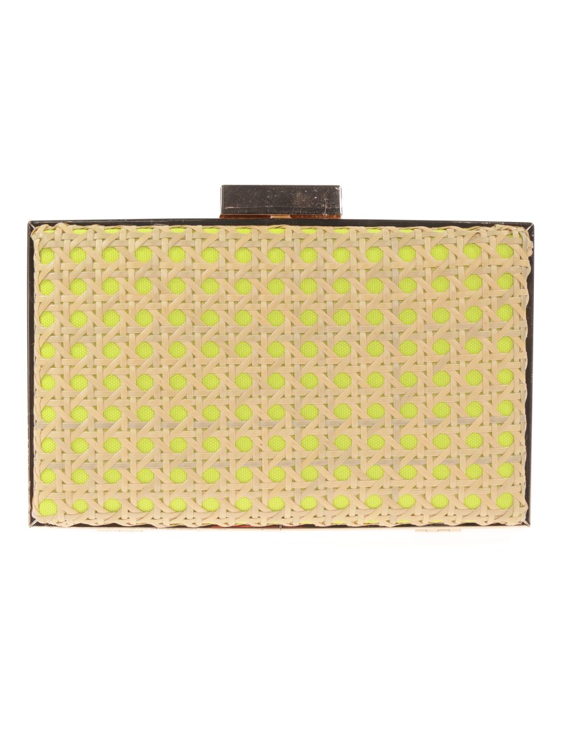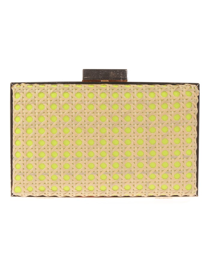 Bolso de fiesta. Efecto rafia. Asa de hombro en cadena. Forro sin bolsillo interior. Cierre metálico dorado.