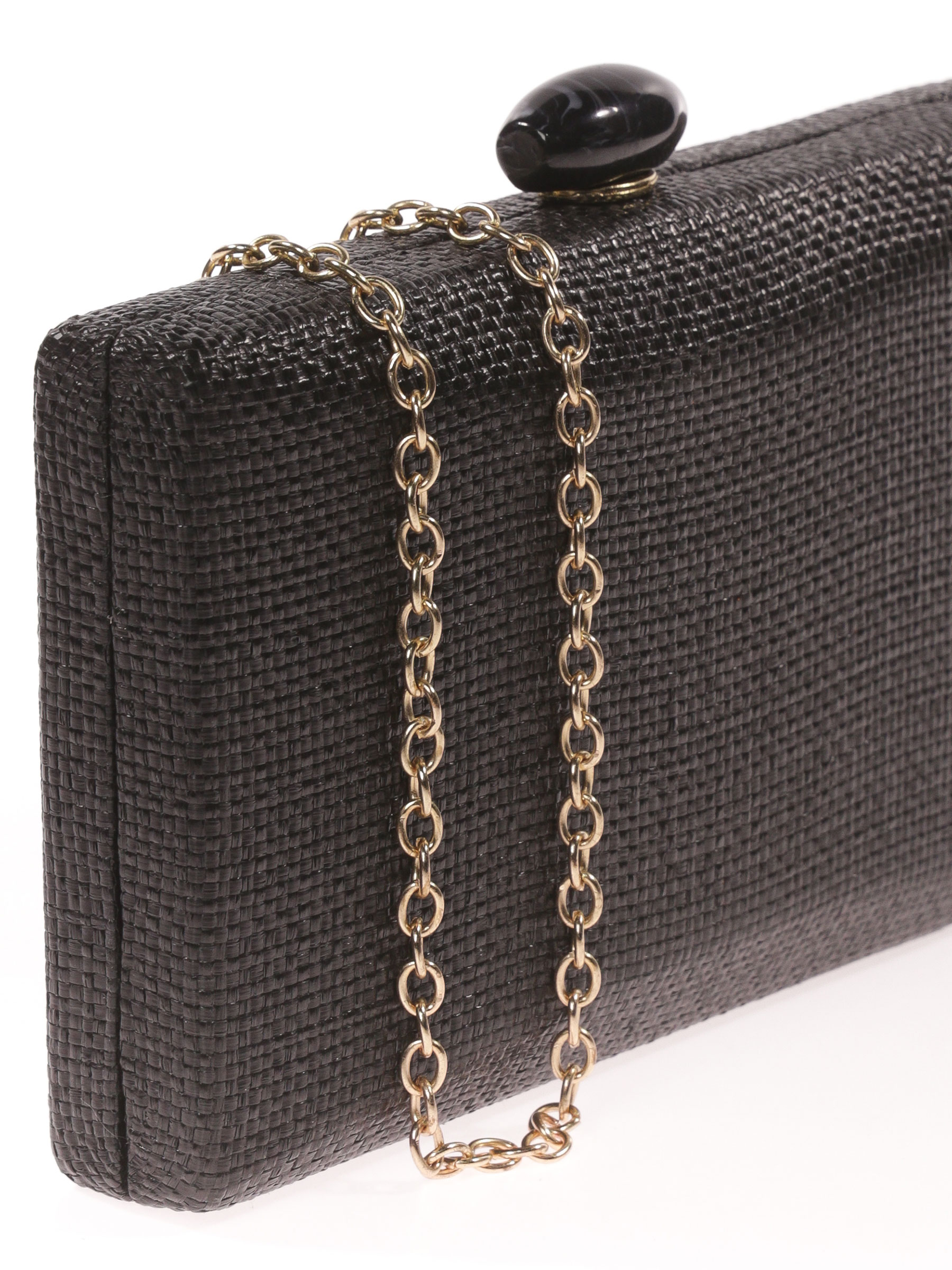 Bolso de fiesta. Efecto rafia. Detalle abalorio de efecto piedra. Asa de hombro en cadena. Forro sin bolsillo interior. Cierre metálico.