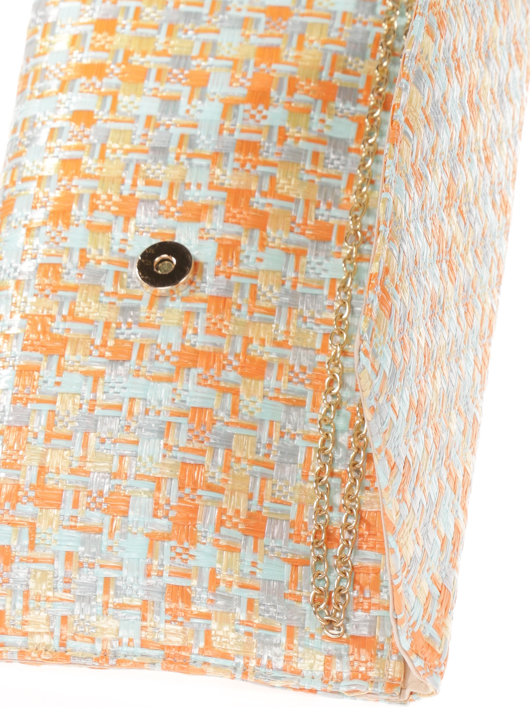 Bolso de fiesta. Efecto rafia. Asa de hombro en cadena. Forro con bolsillo interior. Cierre mediante imán.