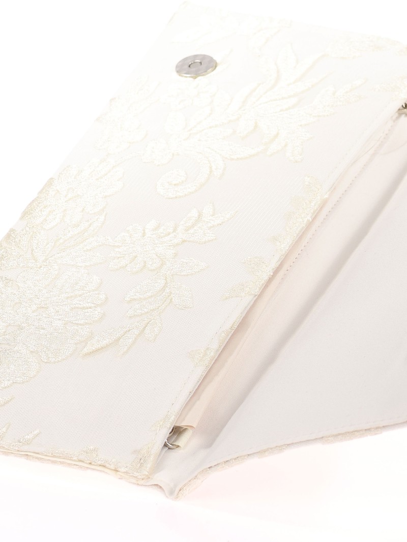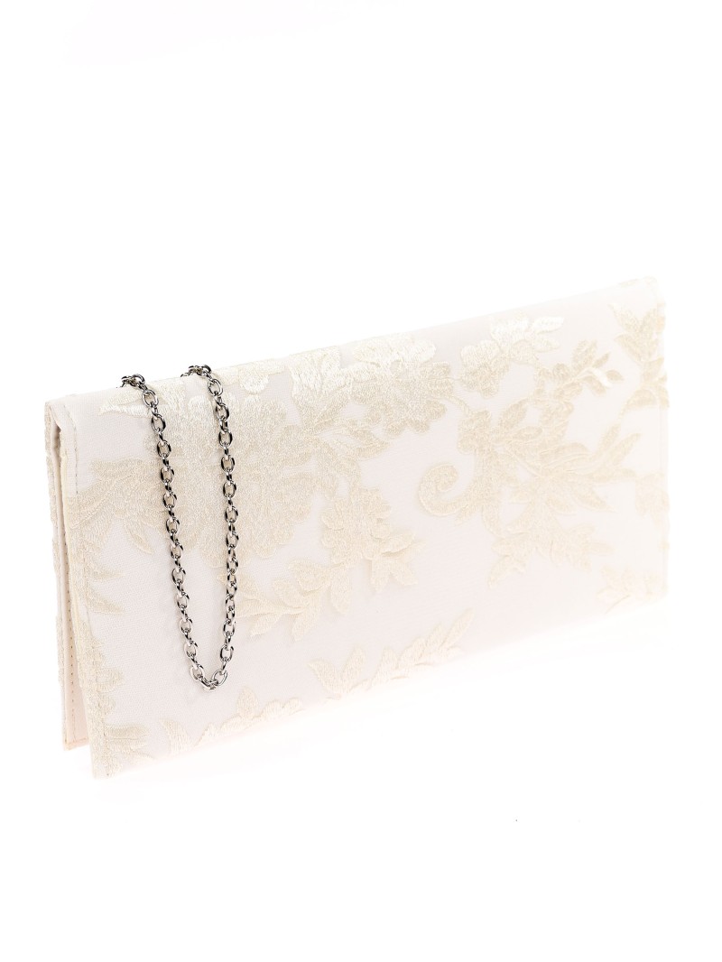 Bolso de fiesta. Material raso. Tul bordado de flores en ambos lados. Asa de hombro en cadena. Bolsillo interior con cremallera. Cierre mediante imán.