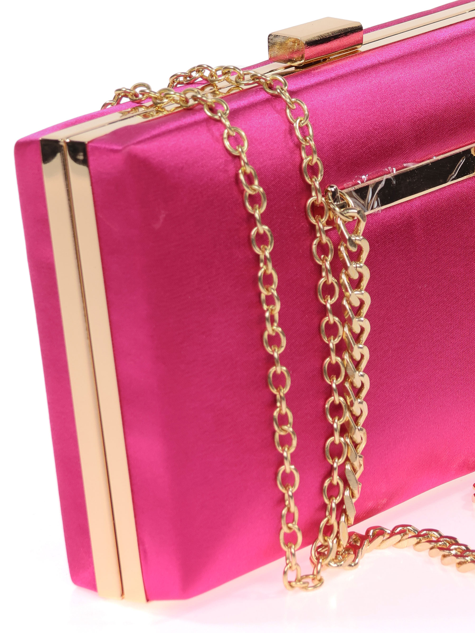 Detalles de AD-130309 FUCSIA bolso clutch de fiesta raso cadenas