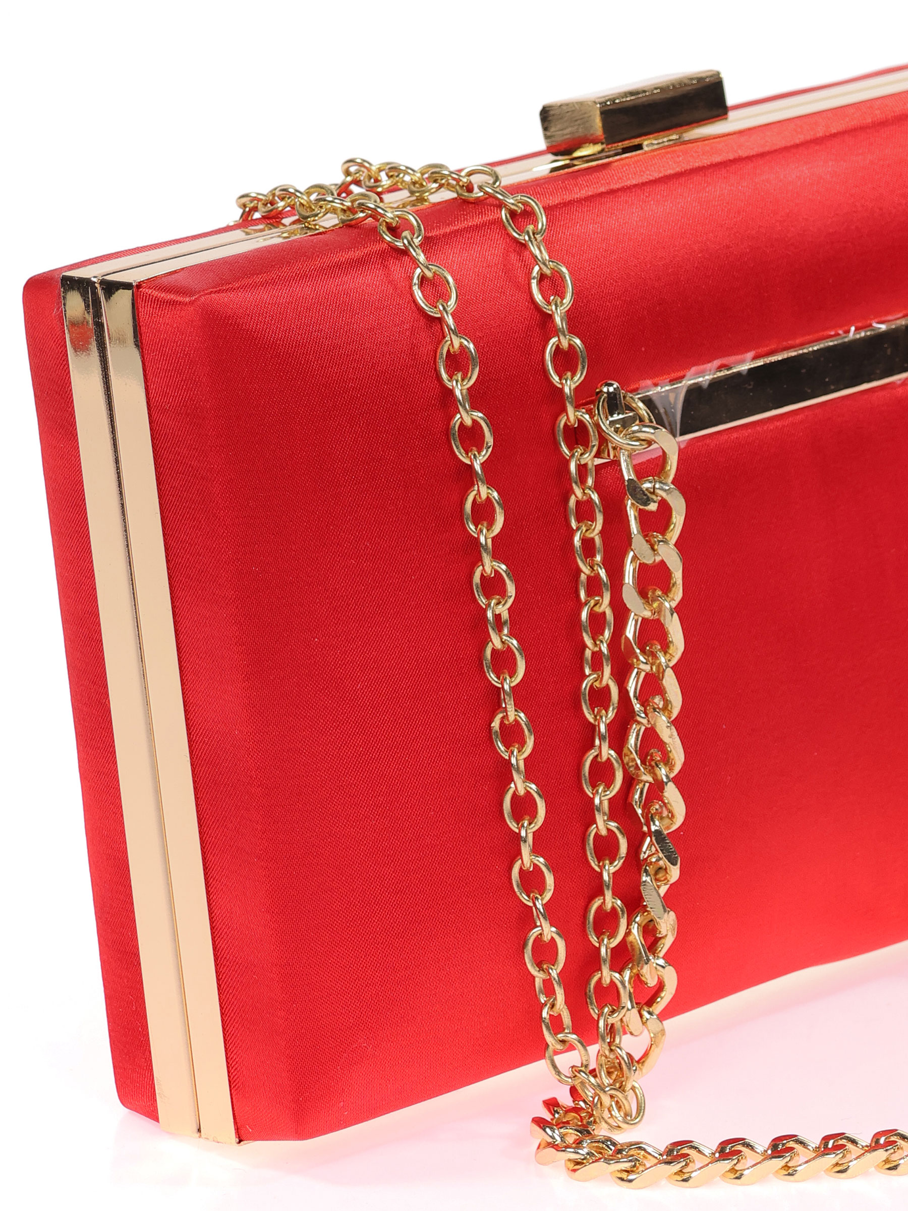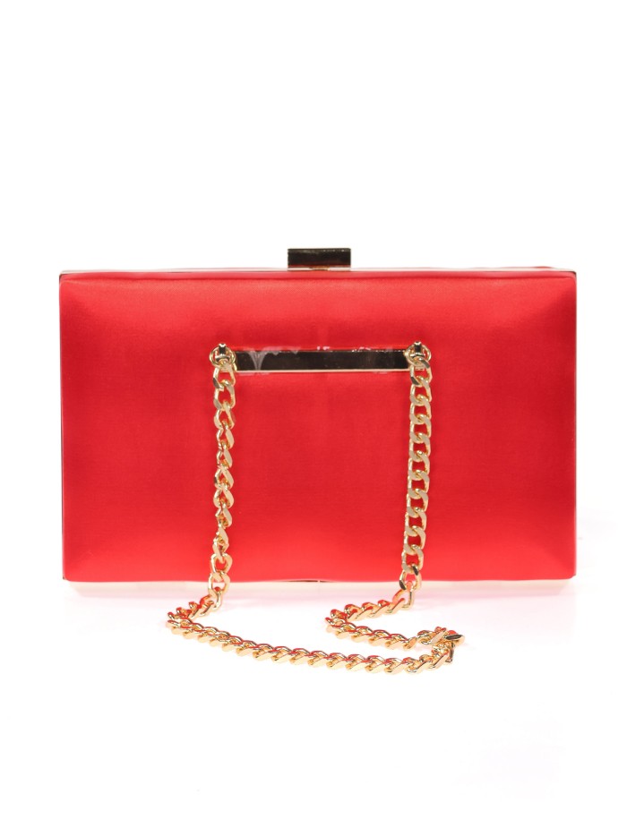 Bolso clutch de fiesta raso cadenas rojo