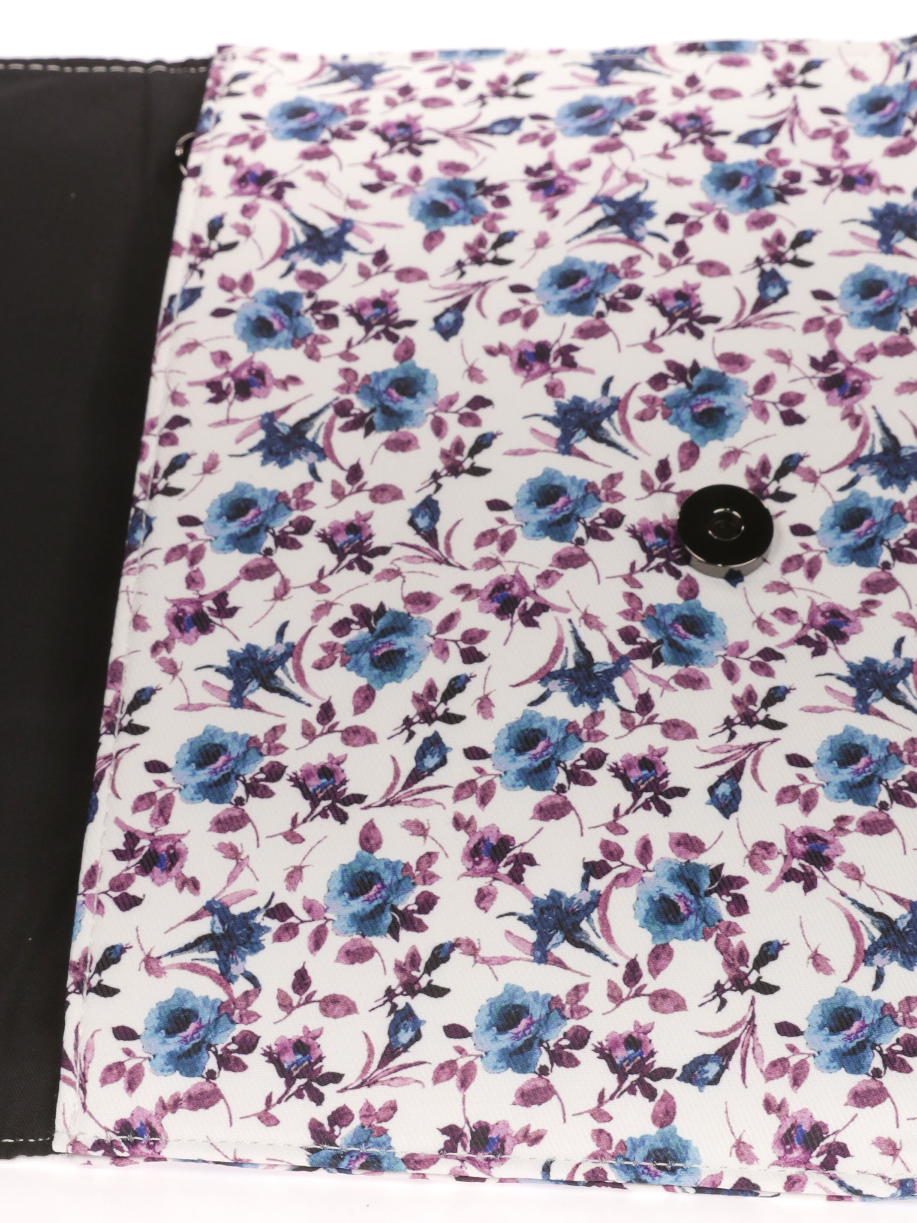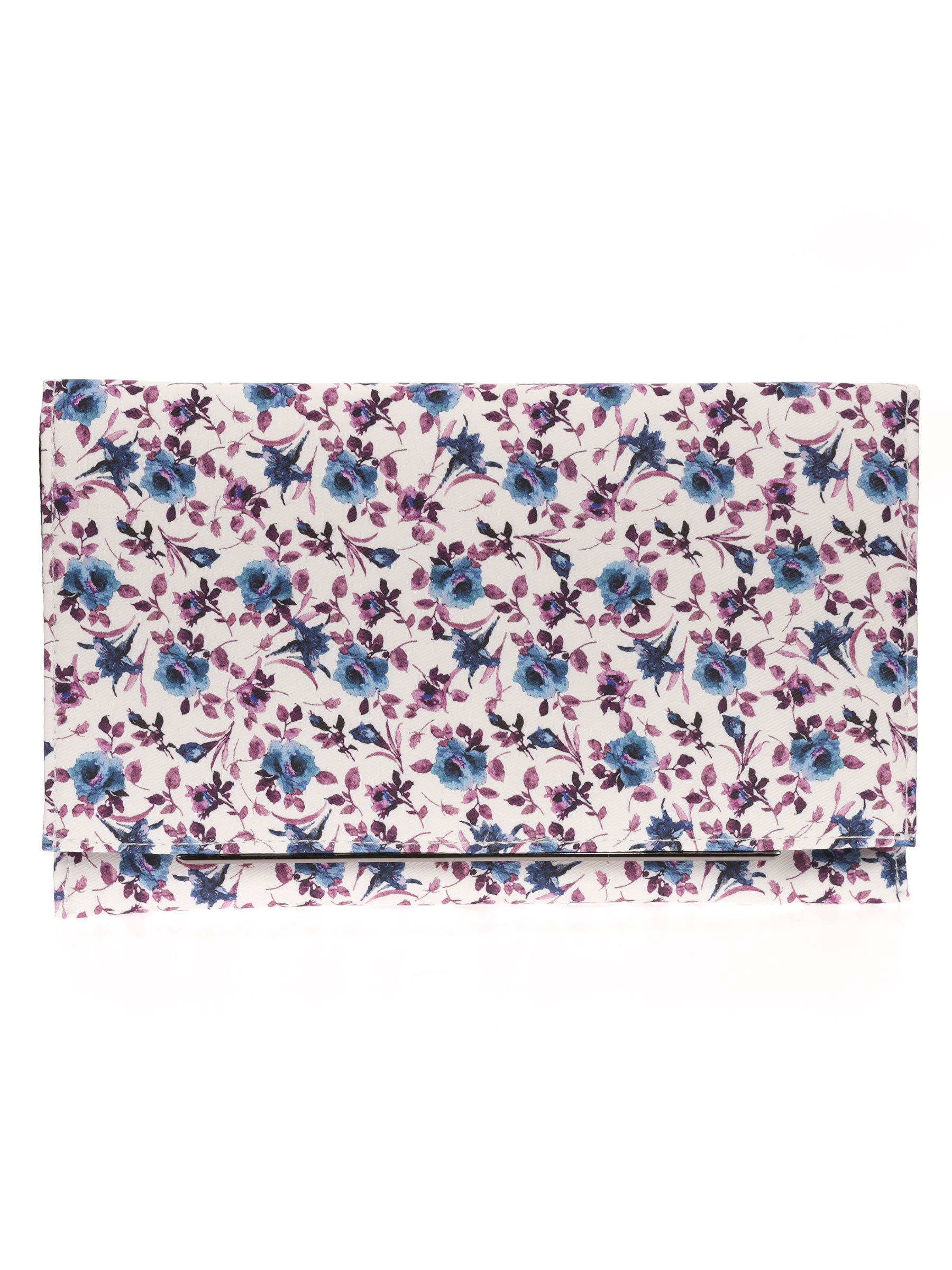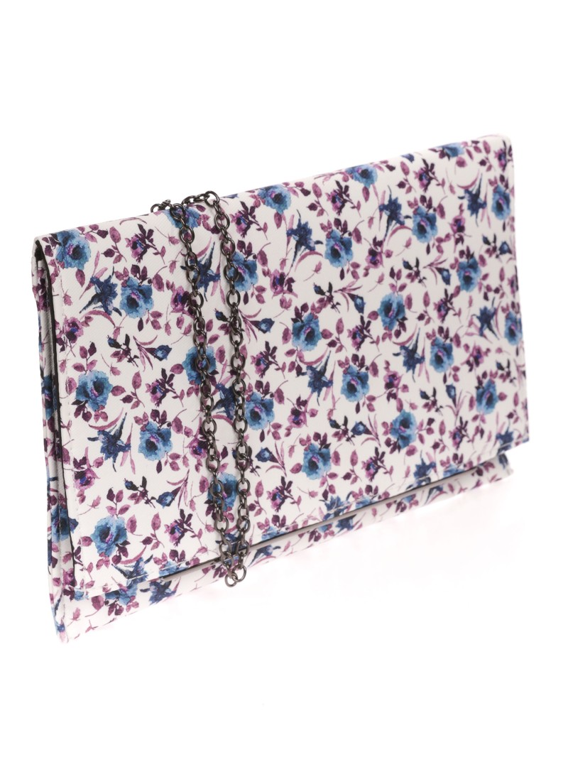 Bolso de fiesta. Tela estampada de flores en ambos lados. Asa de hombro en cadena. Bolsillo interior con cremallera. Cierre mediante imán.