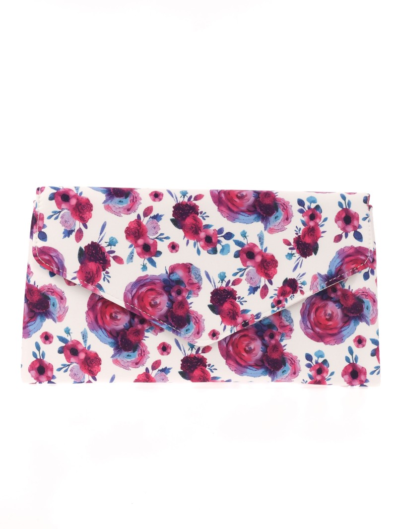 Bolso de fiesta. Tela estampada de flores en ambos lados. Asa de hombro en cadena. Bolsillo interior con cremallera. Cierre mediante imán.