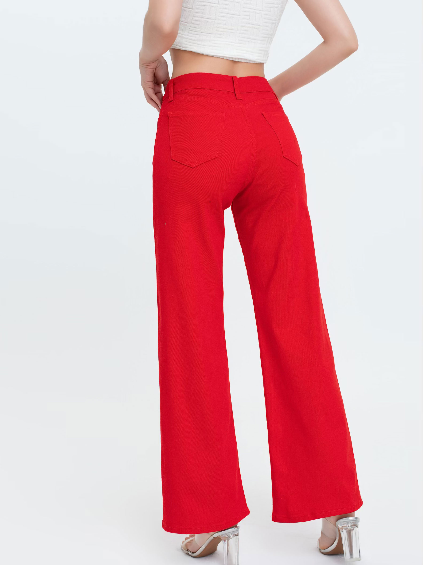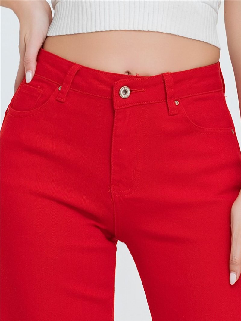 Detalles de jeans rectos tiro alto MF-B22530-2-ROJO