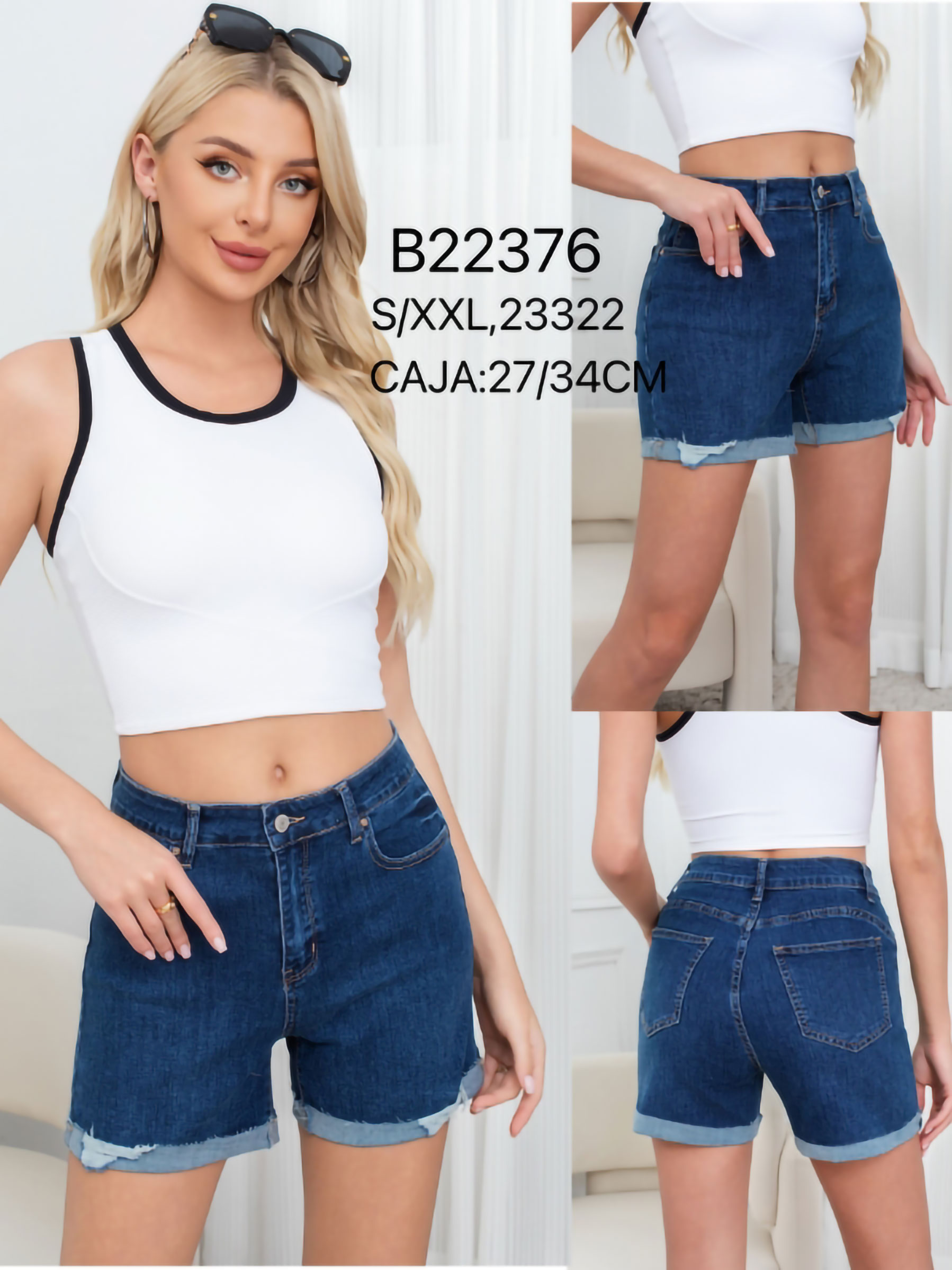 Detalles de short denim rotos bajo acabado en vuelta MF-B22376