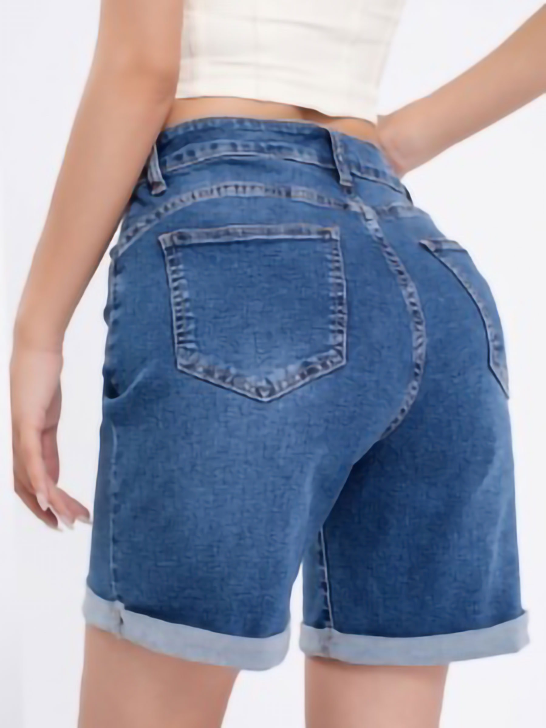 Detalles de bermuda denim bajo acabado en vuelta MF-B22383
