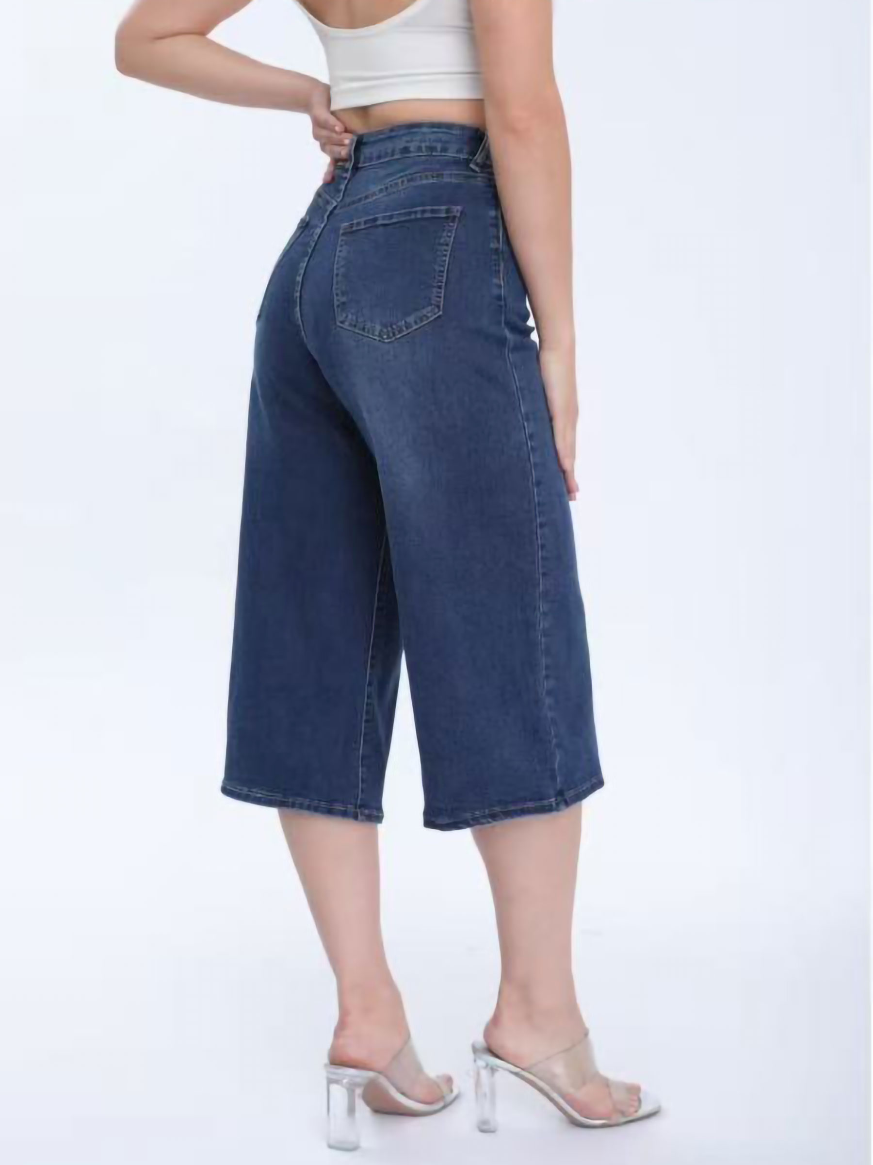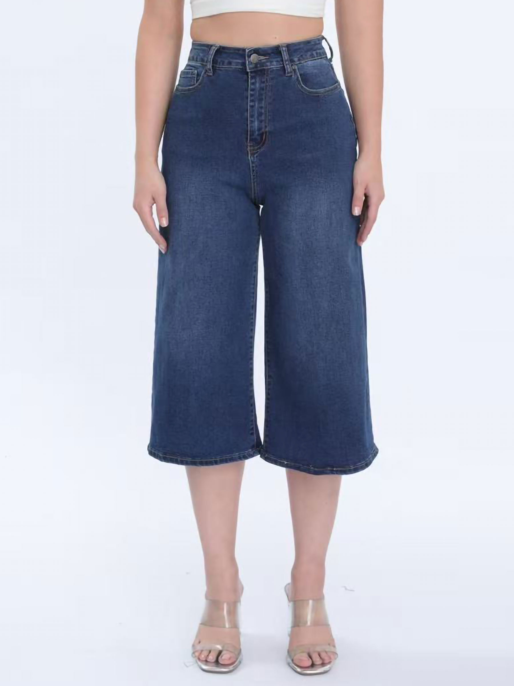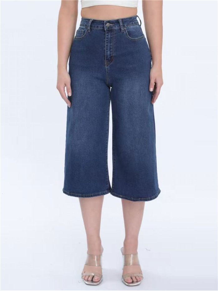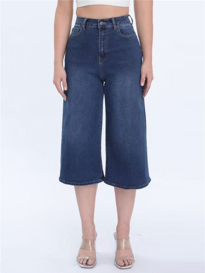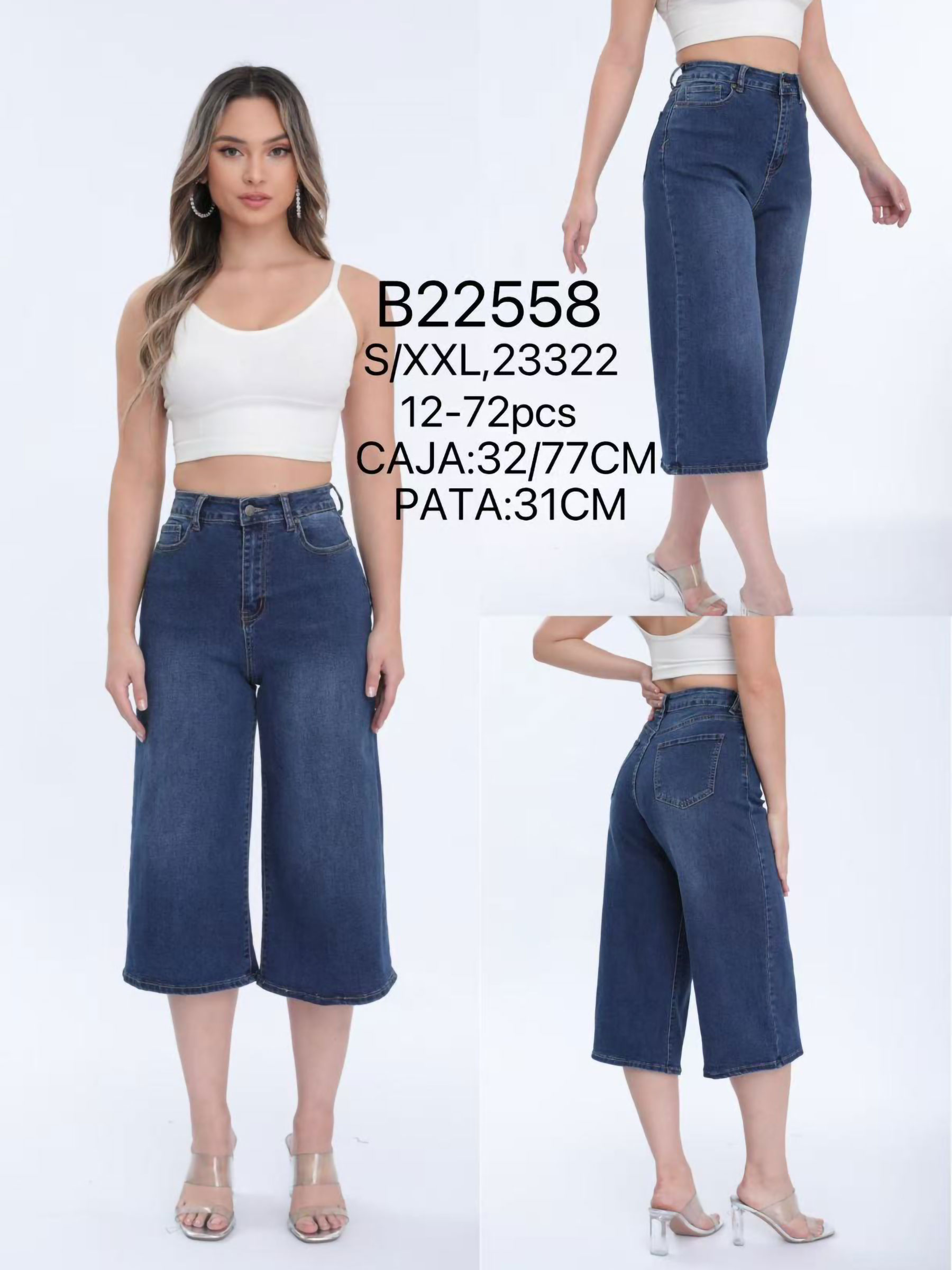 Vaqueros pirata. Tiro alto. Cinco bolsillos. Cierre frontal con cremallera y botón metálico.