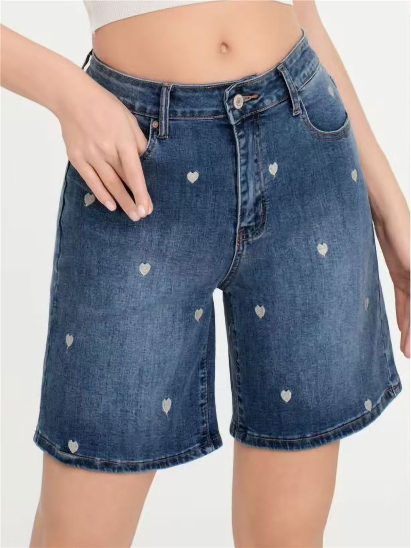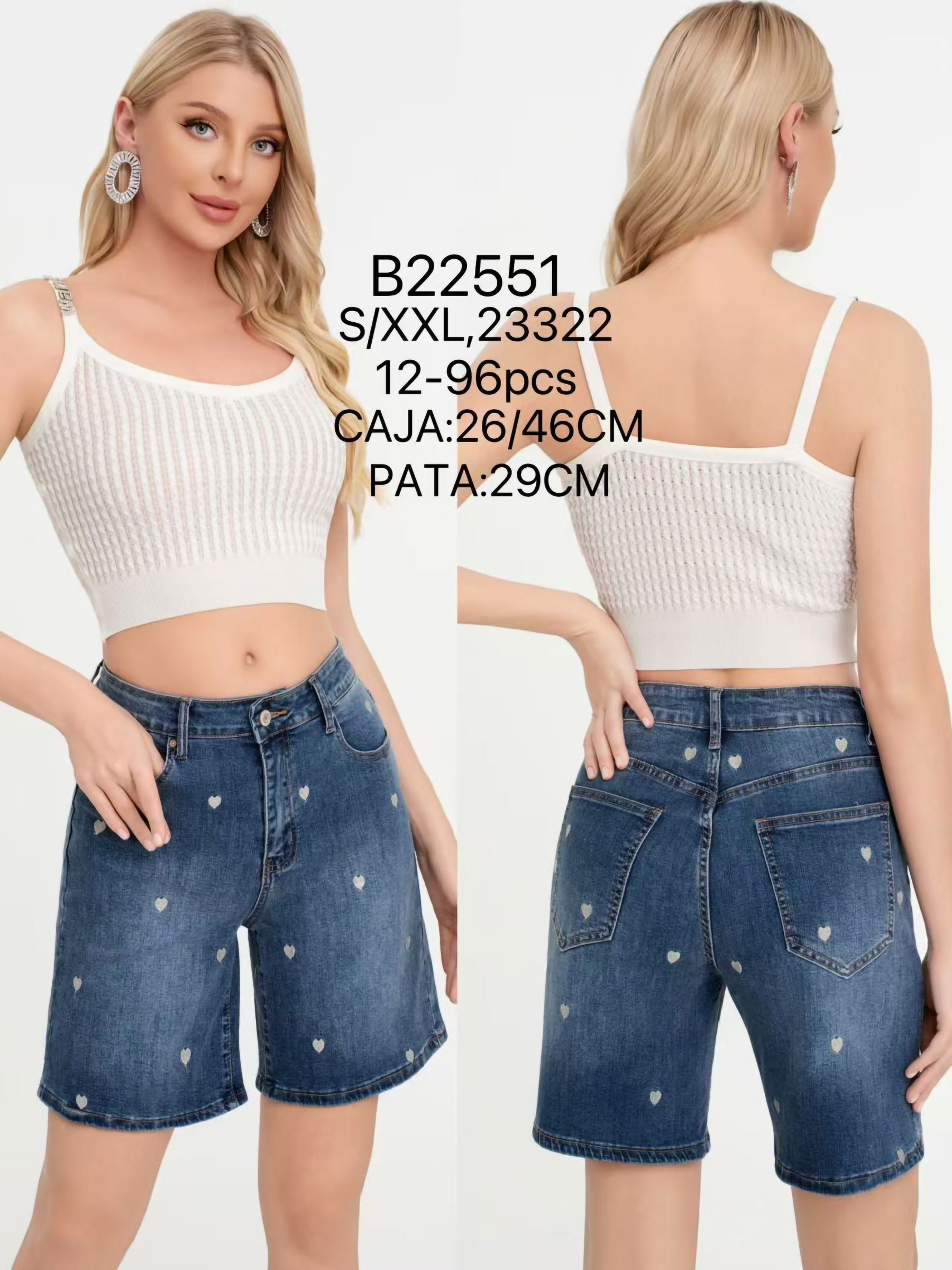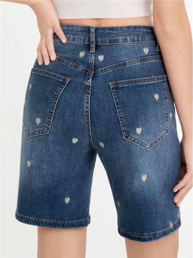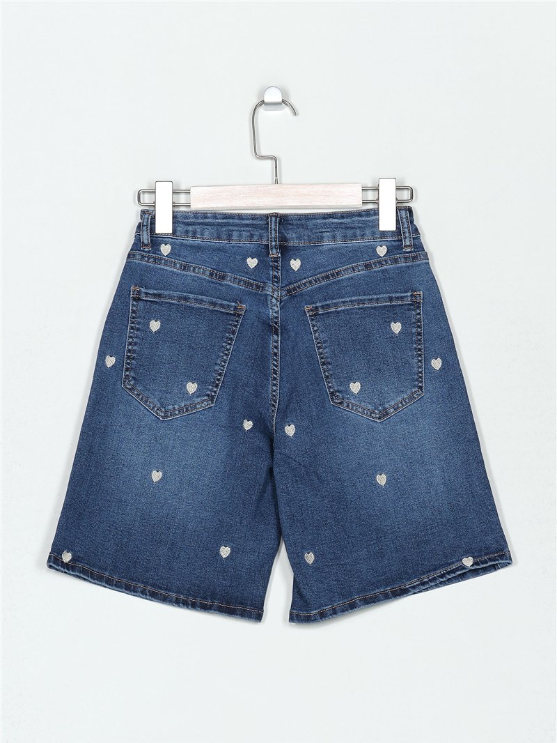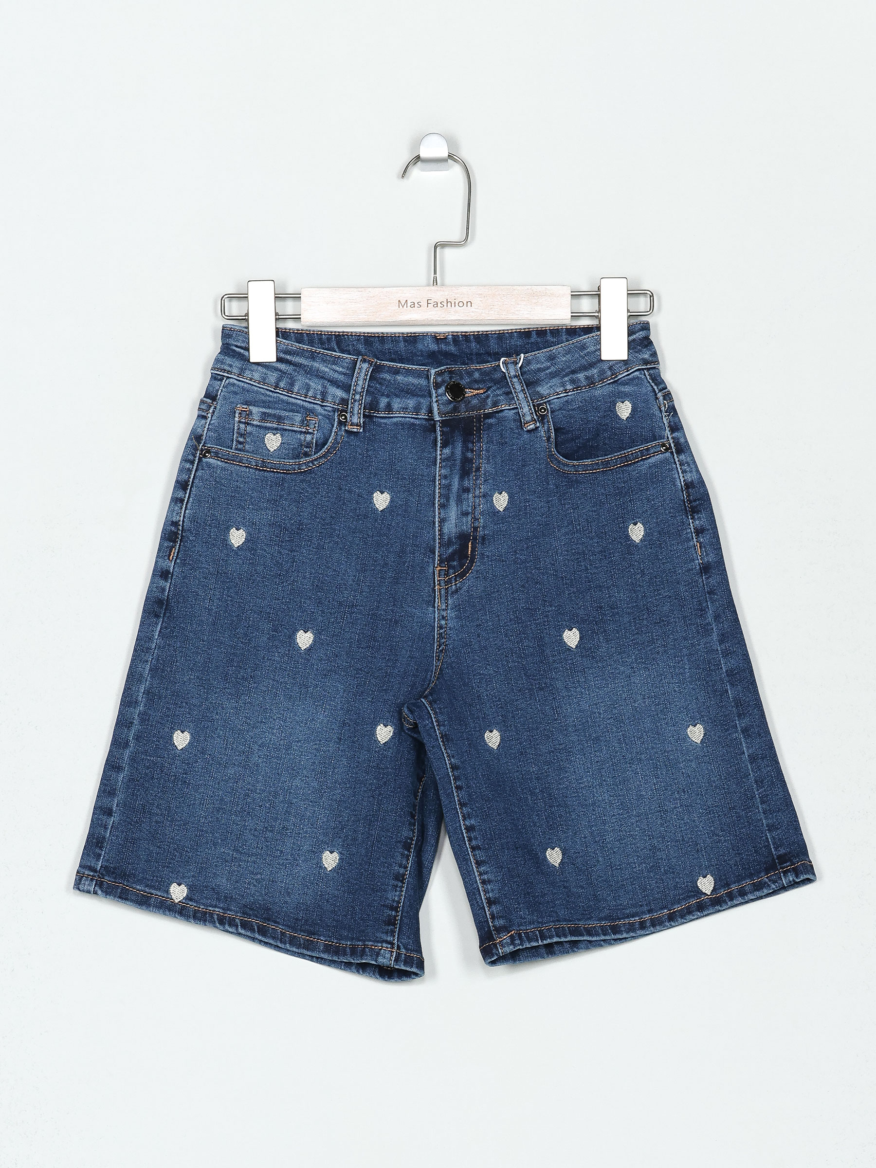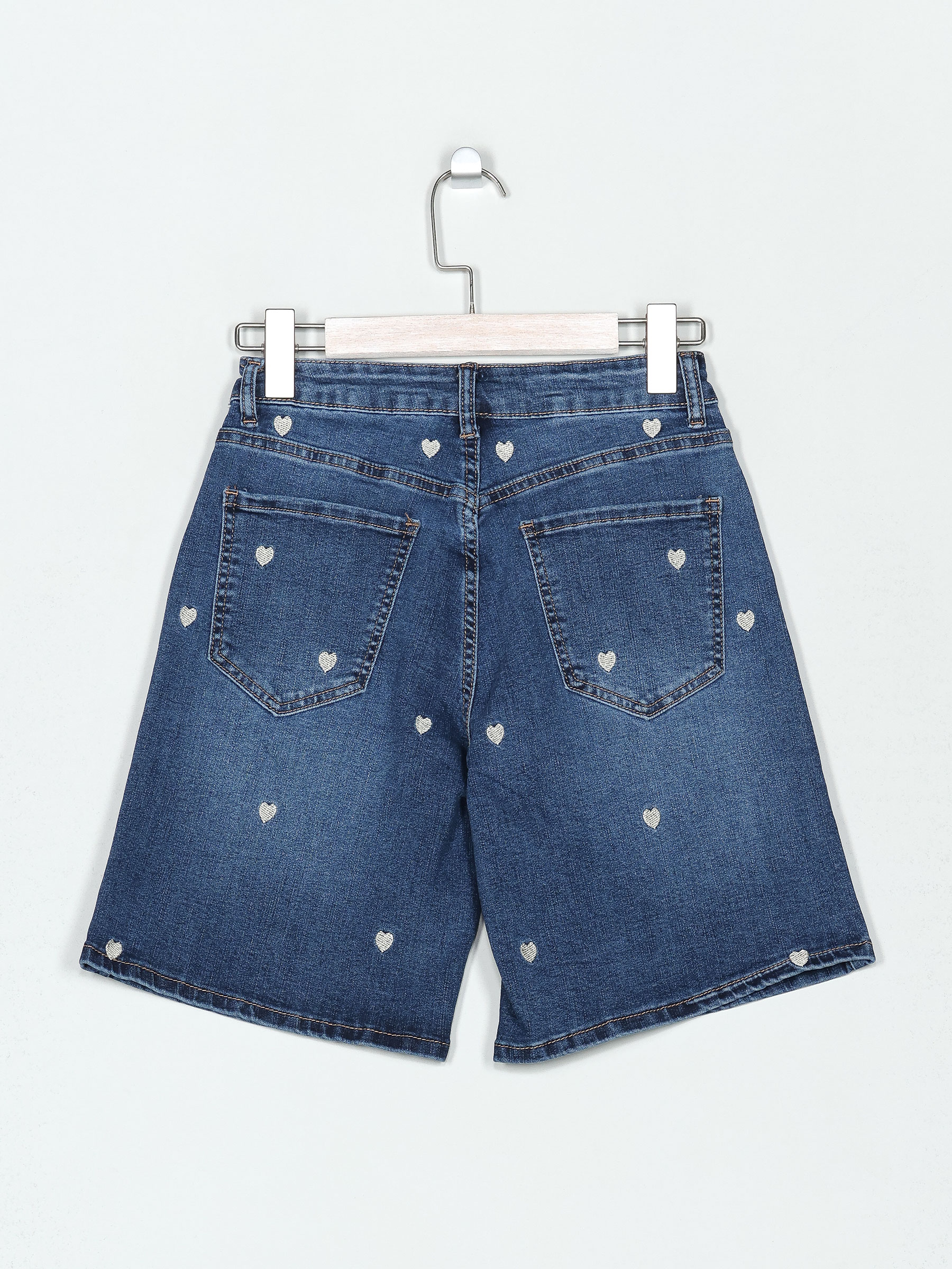 Detalles de bermuda denim corazoncitos bordados MF-B22551