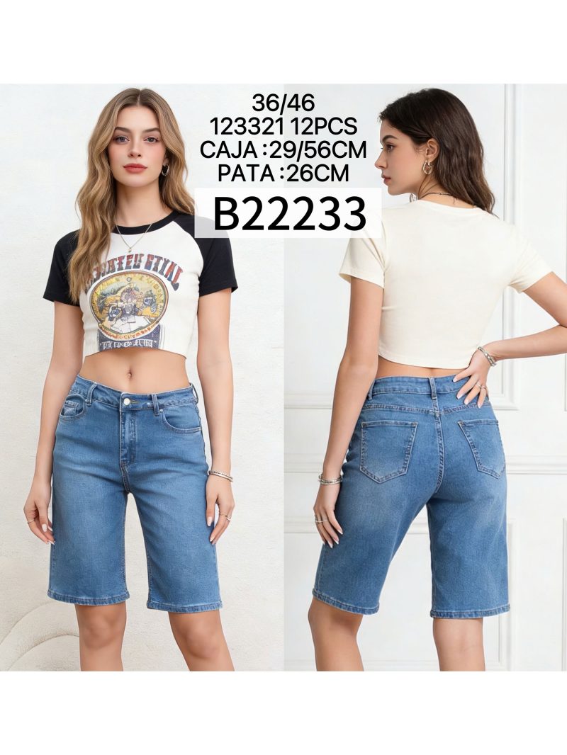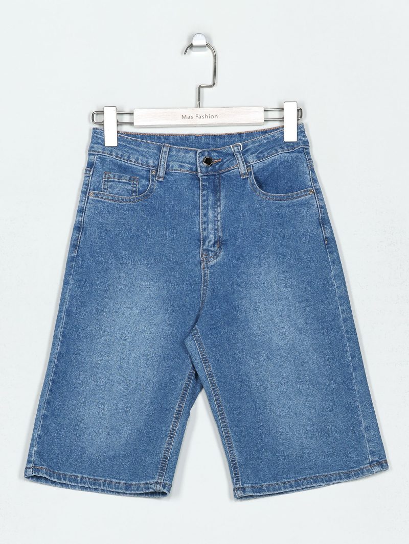 Bermuda denim. Tiro alto. Cinco bolsillos. Cierre delantero con cremallera y botón metálico.