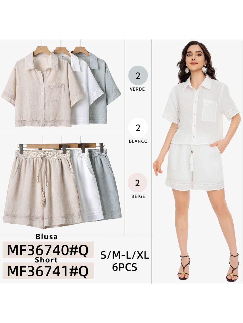Short fluido con cordón y puntilla